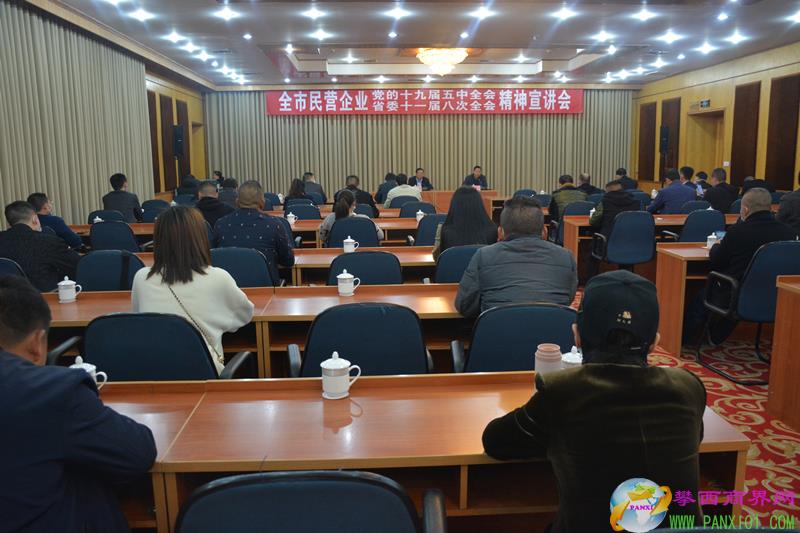 攀西商界網(wǎng)報(bào)道(記者 熊毅)12月24日,攀枝花市工商聯(lián)在會(huì)展中心組織召開全市民營(yíng)企業(yè)學(xué)習(xí)貫徹黨的十九屆五中全會(huì)和省委十一屆八次會(huì)議精神宣講會(huì)。