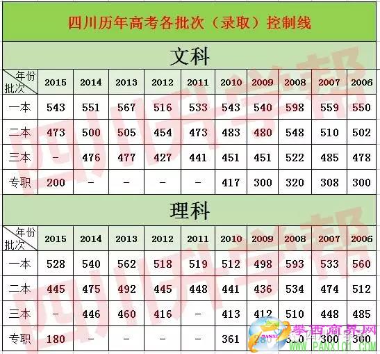 四川歷年高考錄取分數(shù)線