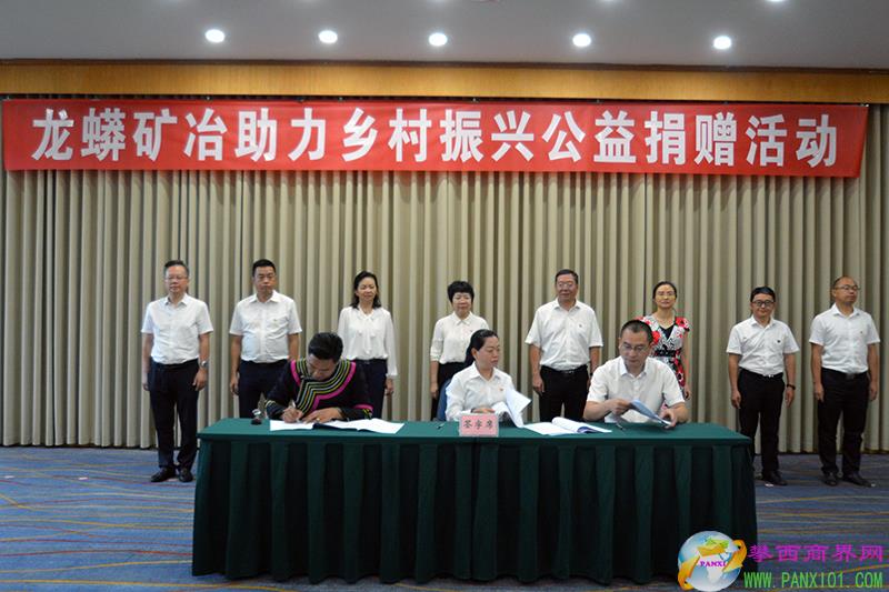 在捐贈儀式現(xiàn)場,市工商聯(lián)副主席、四川龍蟒礦冶公司總經(jīng)理陳俊,仁和區(qū)務(wù)本鄉(xiāng)大火山村黨支部書記、村委會主任安子紅,與四川省扶貧基金會攀枝花市分會會長黃穎簽署定向捐贈協(xié)議書并舉牌捐贈。