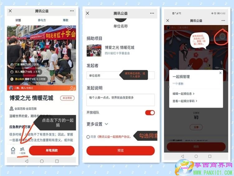 2.愛心企業(yè)需要以單位名義發(fā)起“一起捐”,否則無論您捐多少,都無法單獨(dú)顯示您企業(yè)捐贈(zèng)的情況。使用“一起捐”,是便于團(tuán)隊(duì)代表和有影響力的個(gè)人帶動(dòng)團(tuán)隊(duì)其他成員、親朋好友、合作伙伴、政企員工等一起參與的集體捐贈(zèng)。發(fā)起“一起捐”的具體方法非常簡(jiǎn)單:企業(yè)掃碼進(jìn)入項(xiàng)目詳情頁,發(fā)起“一起捐”,發(fā)起成功后會(huì)生成專屬二維碼,保存二維碼,9月7、8、9上午10點(diǎn)前將二維碼分享給團(tuán)隊(duì)成員或朋友圈,發(fā)動(dòng)大家進(jìn)行掃碼捐款即可。(詳見附件)