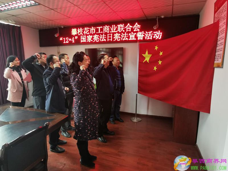 攀西商界網(wǎng)報(bào)道(攀枝花市工商聯(lián) 供稿)在第八個(gè)“國(guó)家憲法日”來臨之際,12月2日下午,攀枝花市工商聯(lián)組織全體機(jī)關(guān)干部職工集中學(xué)習(xí)《中華人民共和國(guó)憲法》、奏唱國(guó)歌并向憲法宣誓。市人大常委會(huì)副主任、市工商聯(lián)主席趙琪同志手撫憲法領(lǐng)誦誓詞,其他宣誓人在后方列隊(duì)站立,跟誦誓詞。