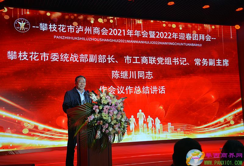 市委統(tǒng)戰(zhàn)部副部長(zhǎng)、市工商聯(lián)黨組書記、常務(wù)副主席陳繼川出席并講話。他首先對(duì)獲得表彰表?yè)P(yáng)的先進(jìn)單位、優(yōu)秀會(huì)長(zhǎng)、優(yōu)秀會(huì)員以及考上大學(xué)的會(huì)員子女表示祝賀。對(duì)2020-2021年,市瀘州商會(huì)勇?lián)鐣?huì)責(zé)任,在扶貧攻堅(jiān)、公益事業(yè)、防疫抗震等方面積極捐款捐物、修橋修路所作出的貢獻(xiàn)給予充分肯定。2022年將是機(jī)遇與挑戰(zhàn)并存的一年,他希望市瀘州商會(huì)繼續(xù)按照“政治建會(huì),團(tuán)結(jié)立會(huì),服務(wù)興會(huì),改革強(qiáng)會(huì)”的總體方針,不斷推進(jìn)商會(huì)發(fā)展,在會(huì)員發(fā)展、經(jīng)濟(jì)服務(wù)、維權(quán)服務(wù)等方面做好工作,同時(shí)希望會(huì)員企業(yè)圍繞“三個(gè)圈層”,立足新發(fā)展階段,踐行新發(fā)展理念,融入新發(fā)展格局,不斷推進(jìn)企業(yè)發(fā)展壯大,為攀枝花實(shí)現(xiàn)高質(zhì)量發(fā)展做出積極貢獻(xiàn)。