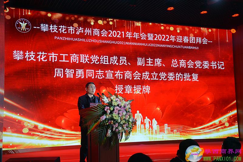 市工商聯(lián)黨組成員、副主席、市總商會(huì)黨委書記周智勇出席并宣布攀枝花市瀘州商會(huì)成立黨委的批復(fù),同時(shí)為攀枝花市瀘州商會(huì)黨委授章授牌。