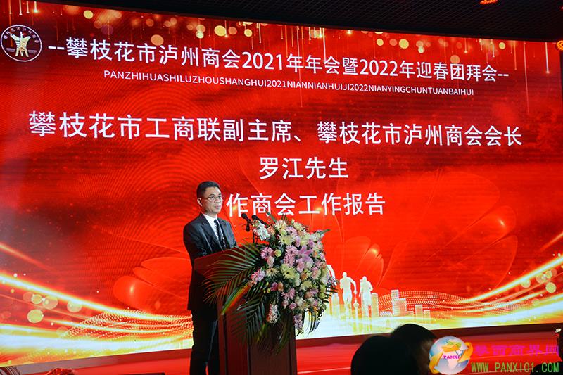市工商聯(lián)副主席、攀枝花市瀘州商會(huì)會(huì)長(zhǎng)羅江作工作報(bào)告,總結(jié)2020-2021年工作,展望2022年工作,推進(jìn)商會(huì)健康、協(xié)調(diào)發(fā)展。羅江在報(bào)告中概括了商會(huì)工作主要內(nèi)容就是高舉旗幟,始終堅(jiān)持黨的領(lǐng)導(dǎo),牢固樹(shù)立和堅(jiān)持社會(huì)主義方向;不斷加強(qiáng)商會(huì)自身建設(shè),積極為社會(huì)作貢獻(xiàn)。在羅江的帶領(lǐng)下,商會(huì)工作做到了思路清晰,目標(biāo)明確,措施得當(dāng),效果明顯。商會(huì)被全國(guó)工商聯(lián)評(píng)為“四好”商會(huì),省和市評(píng)為先進(jìn)商會(huì),攀枝花市、瀘州市授予抗疫工作突出獎(jiǎng),脫貧攻堅(jiān)先進(jìn)獎(jiǎng),商會(huì)黨支部評(píng)為先進(jìn)黨支部,五個(gè)會(huì)長(zhǎng)、副會(huì)長(zhǎng)、秘書長(zhǎng)被瀘州市工商聯(lián)評(píng)為優(yōu)秀會(huì)長(zhǎng)、秘書長(zhǎng),瀘縣縣委、縣政府發(fā)文對(duì)商會(huì)農(nóng)民工工作進(jìn)行了表彰獎(jiǎng)勵(lì)。據(jù)不完全統(tǒng)計(jì),2020-2021年,攀枝花市瀘州商會(huì)會(huì)員為攀瀘兩地捐款捐物、修橋修路、扶貧攻堅(jiān)、公益事業(yè)、防疫、地震等共捐贈(zèng)近2000萬(wàn)元。特別是在疫情中103名會(huì)員短短二天捐款65萬(wàn)元,瀘州地震也是短短一天105名會(huì)員就捐贈(zèng)23萬(wàn)元現(xiàn)金并親自送往地震災(zāi)區(qū),同災(zāi)區(qū)人民站在一起,共渡難關(guān)。
