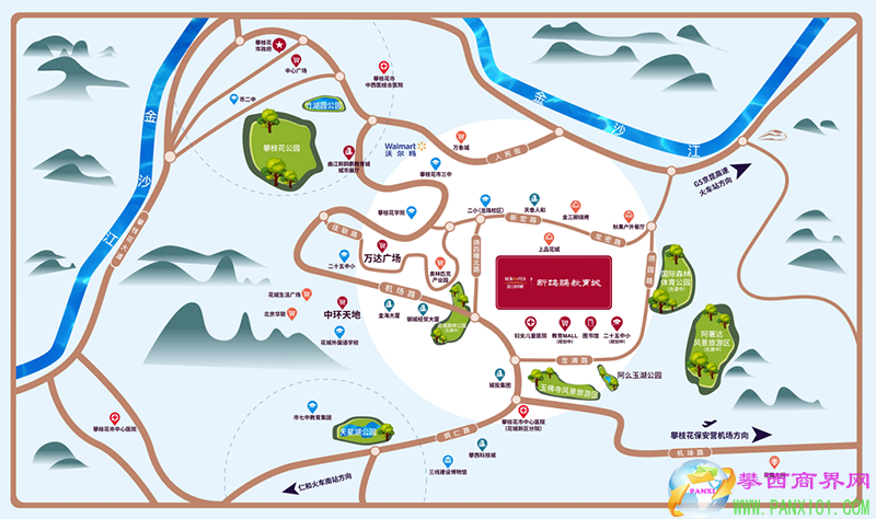 新鷗鵬教育城,毗鄰3500畝攀枝花森林公園及4000畝馬家田庫(kù)區(qū)花海公園,自然環(huán)境優(yōu)越。同時(shí)以1050畝體量,規(guī)劃約200畝生態(tài)運(yùn)動(dòng)公園、約300畝教育主題公園、約3公里藍(lán)花楹大道等。結(jié)合已經(jīng)呈現(xiàn)的阿么玉湖水景公園,將山水自然在一方園境中延續(xù),淋漓盡致地演繹繁華里的自然居所,自然里的人居進(jìn)階,是攀枝花城芯目前為止最大規(guī)模公園住區(qū)。