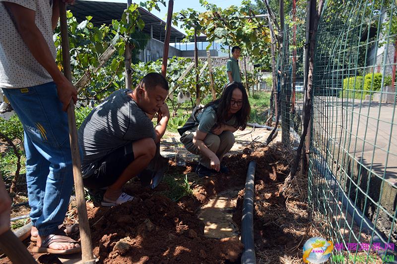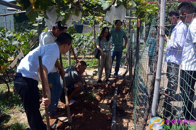 培訓(xùn)會(huì)結(jié)束后,西區(qū)科協(xié)便把40克高分子竹菌肥樣品在格里坪村的葡萄種植基地隨機(jī)找到一株葡萄按照產(chǎn)品使用說(shuō)明現(xiàn)場(chǎng)為參會(huì)人員進(jìn)行了施肥演示。