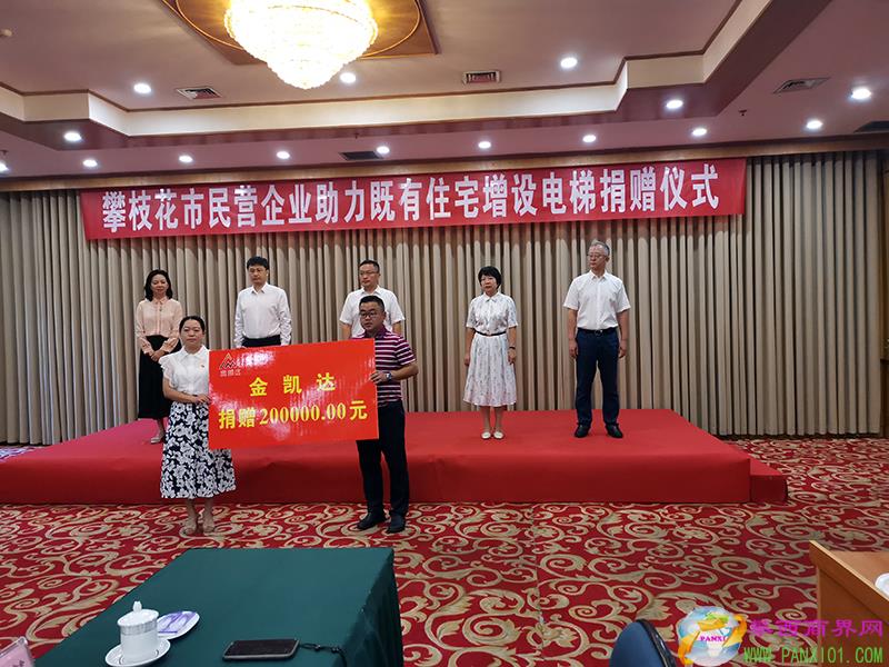 攀西商界網報道(記者 熊毅)孝敬老一輩,感恩三線人。8月9日上午,攀枝花市民營企業(yè)助力既有住宅增設電梯捐贈儀式在會展中心綜合廳舉行,我市4家民營企業(yè)通過四川省扶貧基金會攀枝花市分會慷慨捐資800萬元,助力我市既有住宅增設電梯項目。其中:四川安寧鐵鈦股份有限公司捐贈700萬元,四川龍佰礦冶有限公司捐贈50萬元,攀枝花市潤澤建材有限公司捐贈30萬元,攀枝花市金凱達貿易有限公司捐贈20萬元。