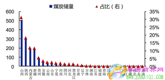 我國(guó)煤炭?jī)?chǔ)量集中于山西、陜西等地(億噸)