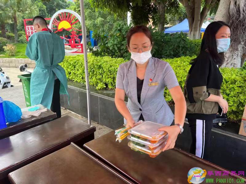 公司總經(jīng)理曾進(jìn)帶隊,自9月5日起,首先帶領(lǐng)全體黨員15人組成“抗疫志愿服務(wù)隊”,從上午8:00到晚上19:00堅守在抗疫一線,配合米易縣新北社區(qū)、河西社區(qū)在文化廣場參與核酸檢測采樣工作;其次指派安寧明珠后勤保障服務(wù)隊,每天無償提供抗疫一線所有醫(yī)護(hù)人員和志愿者中、晚餐盒飯,截止日前,已免費(fèi)提供220合盒飯,折合人民幣價值6600元。