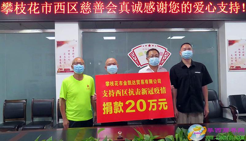 攀西商界網(wǎng)報(bào)道(記者 熊毅)“20萬元‘抗疫’捐款,馬上安排公司財(cái)務(wù)轉(zhuǎn)賬給你們,請(qǐng)你們做好接收準(zhǔn)備”。這是攀枝花市工商聯(lián)副主席、市金凱達(dá)貿(mào)易有限公司董事長劉陳給西區(qū)慈善會(huì)的通話實(shí)錄。守望相助,風(fēng)雨同擔(dān)。在全市上下同心協(xié)力抗擊新冠肺炎疫情的關(guān)鍵時(shí)期,攀枝花市金凱達(dá)貿(mào)易公司積極履行社會(huì)責(zé)任,支持疫情防控,關(guān)心疫情防控一線工作人員,用實(shí)際行動(dòng)為疫情防疫“鼓勁加油”,用真情和愛心傳遞社會(huì)正能量,助力西區(qū)疫情防控工作。