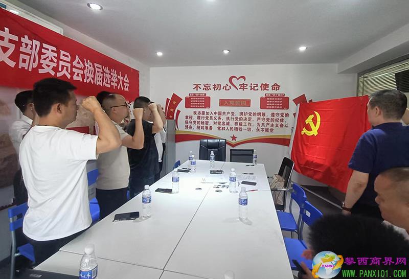 選舉大會(huì)結(jié)束后,全體黨員面向黨旗,舉起右手,重溫入黨誓詞。