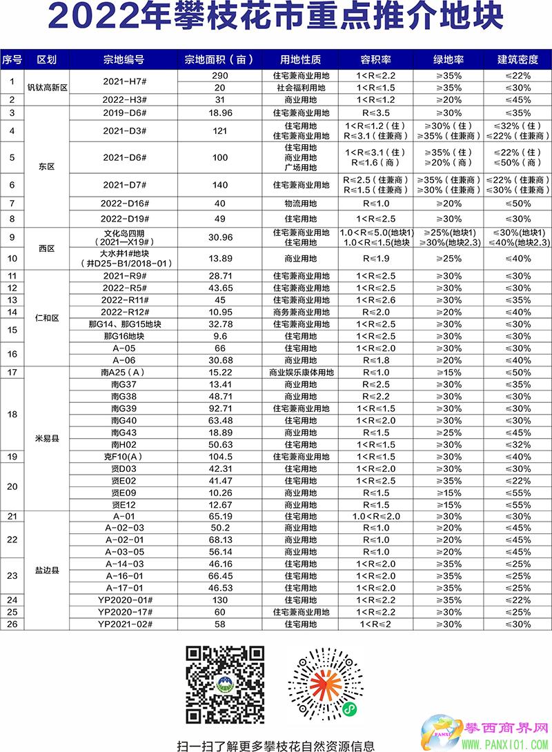 據(jù)了解,本次發(fā)布會(huì)重點(diǎn)推出26宗共計(jì)約2283畝擬上市地塊,東區(qū)、西區(qū)、仁和區(qū)、米易縣、鹽邊縣人民政府,釩鈦高新區(qū)管委會(huì)分管領(lǐng)導(dǎo)分別對(duì)各縣(區(qū))、管委會(huì)的擬上市地塊進(jìn)行了詳細(xì)地介紹,后續(xù)將根據(jù)市場(chǎng)情況和投資需求有序推出。