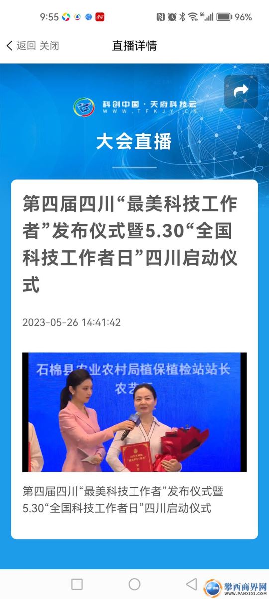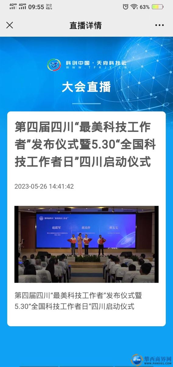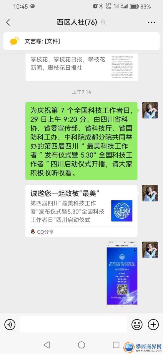 攀西商界網(wǎng)報道(記者 熊毅)5月29日,第四屆四川“最美科技工作者”發(fā)布儀式暨5·30“全國科技工作者日”四川啟動儀式在四川科技館舉行,西區(qū)組織黨政機關(guān)、街道、學(xué)校、農(nóng)村、社區(qū)、農(nóng)技協(xié)和科普基地實時收聽收看了現(xiàn)場直播,向廣大科技工作者表達最誠摯的節(jié)日祝福!