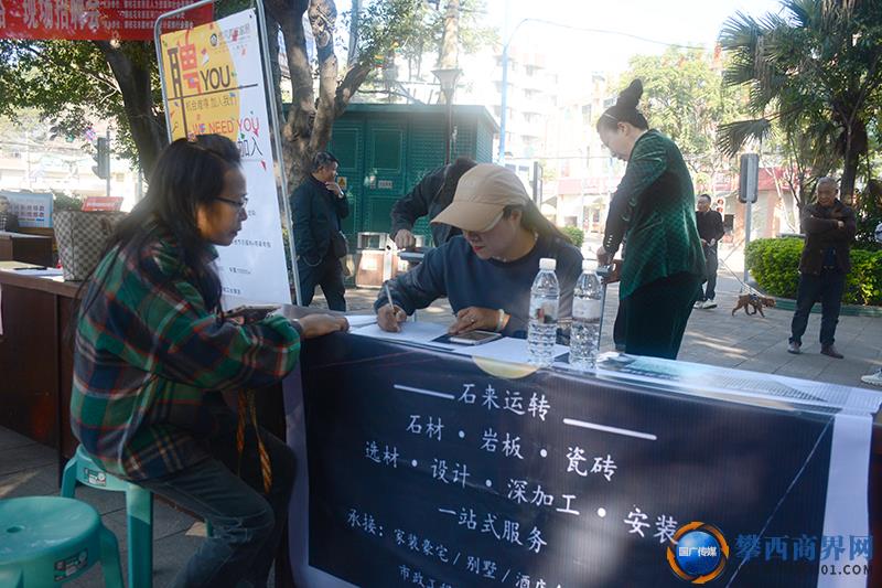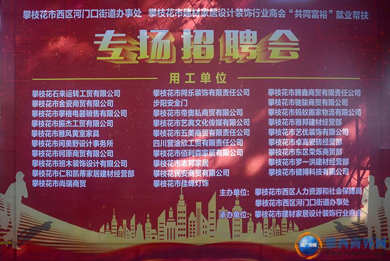 捐贈(zèng)儀式結(jié)束后,攀枝花市建材家居設(shè)計(jì)裝飾行業(yè)商會(huì)還組織了29家會(huì)員企業(yè)在河門(mén)口習(xí)風(fēng)園舉行了專(zhuān)場(chǎng)招聘會(huì),提供了平面設(shè)計(jì)師、廣告制作安裝、司機(jī)、熟食售賣(mài)員、庫(kù)管、營(yíng)業(yè)員等200余個(gè)就業(yè)崗位幫助困難群眾解決就業(yè),活動(dòng)當(dāng)天達(dá)成意向性就業(yè)協(xié)議50多人。