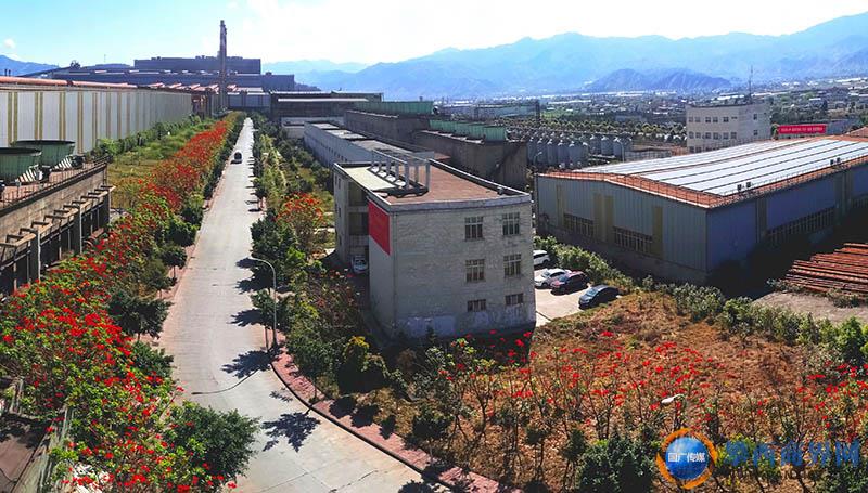 刺桐花盛開(kāi)的西昌鋼釩熱軋生產(chǎn)線廠區(qū)