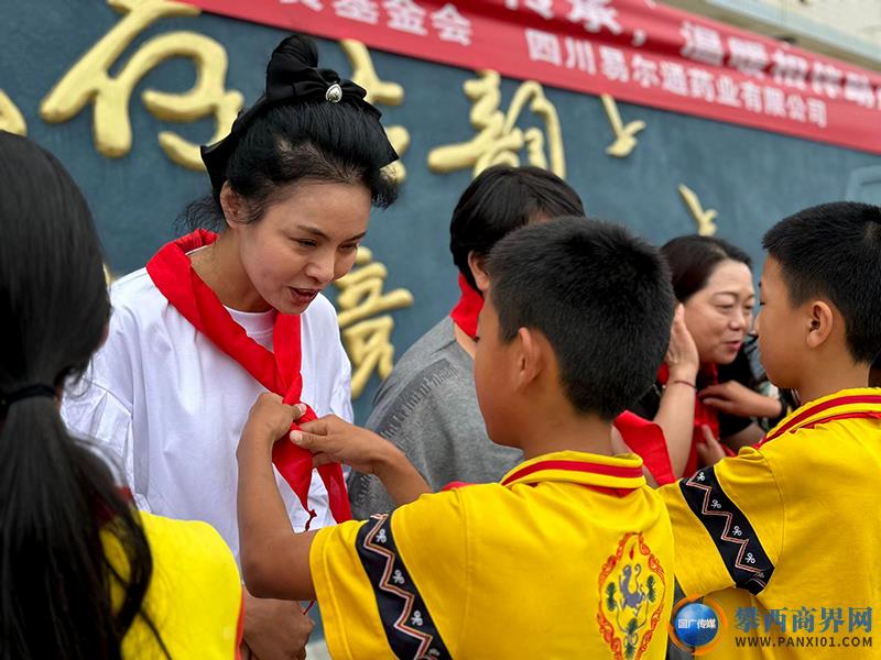 捐贈儀式上,女企業(yè)家們首先觀看了學(xué)校非遺羊皮鼓舞課間操,孩子們右手拿著鼓棒,左手持著羊皮鼓,踏著鼓點(diǎn),歡快跳躍,旋轉(zhuǎn)……該校的課間操名叫《彝風(fēng)古韻》,是根據(jù)當(dāng)?shù)孛耖g舞蹈《羊皮鼓舞》改編而來,分為6個小節(jié),總時長8分21秒。隨后,孩子親手為女企業(yè)家們系上紅領(lǐng)巾并表達(dá)感謝。