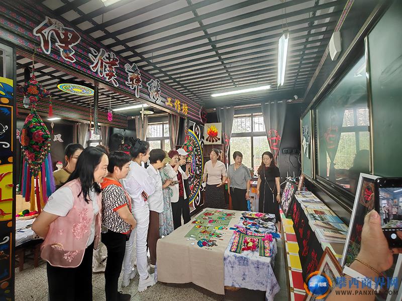 捐贈儀式結(jié)束后,女企業(yè)家還參觀了俚濮彝繡工作坊。俚頗彝繡,是彝族的一項(xiàng)古老技藝,承載著當(dāng)?shù)匾妥迦罕娫跉v史上的厚重書卷,傳承距今已有1700余年歷史。它憑借著精美做工、艷麗色彩、與經(jīng)典彝繡對比更為獨(dú)特的工藝而名揚(yáng)天下。