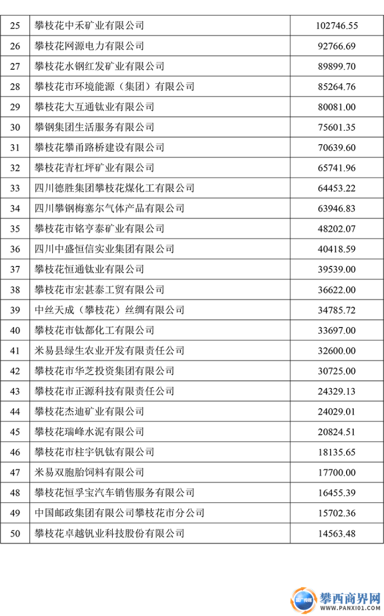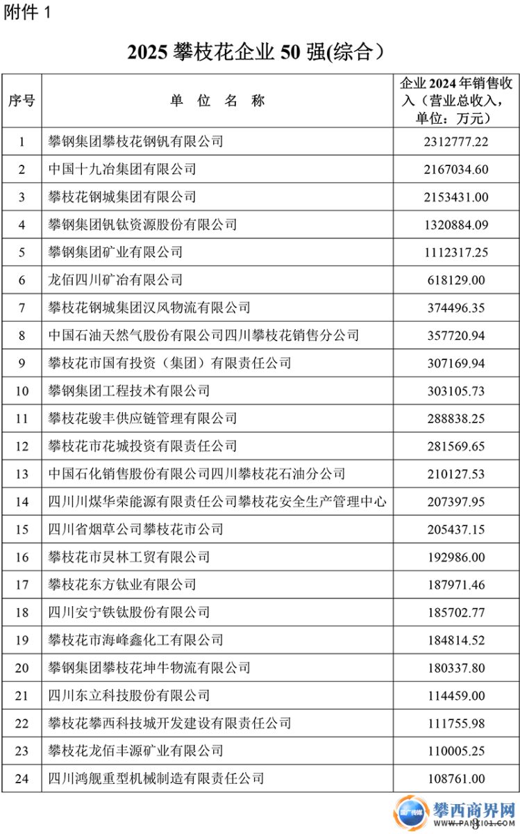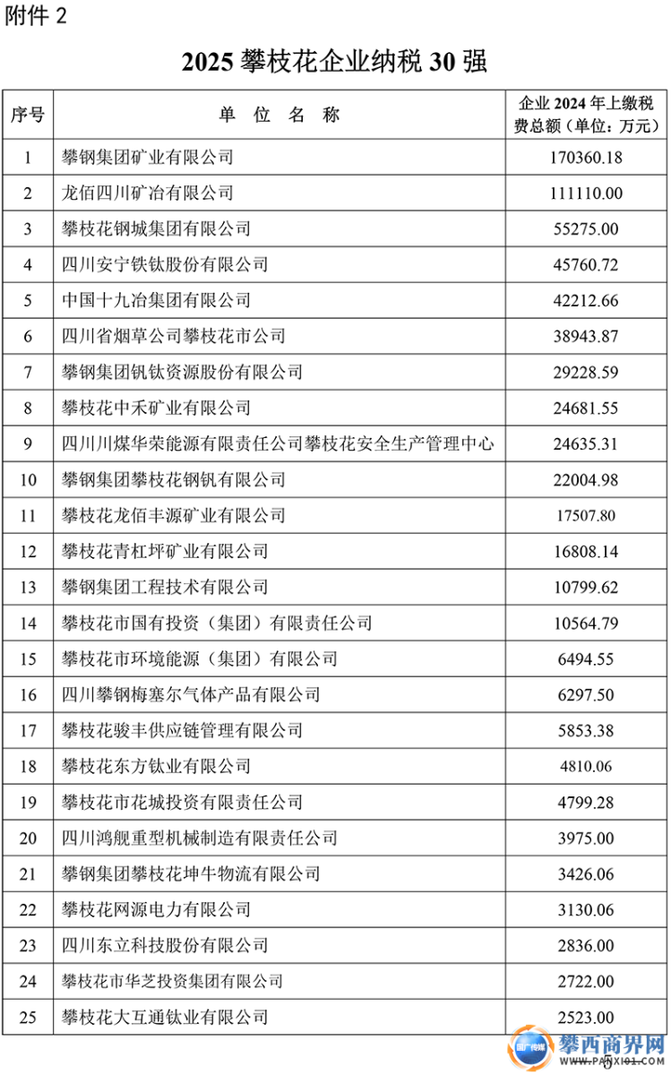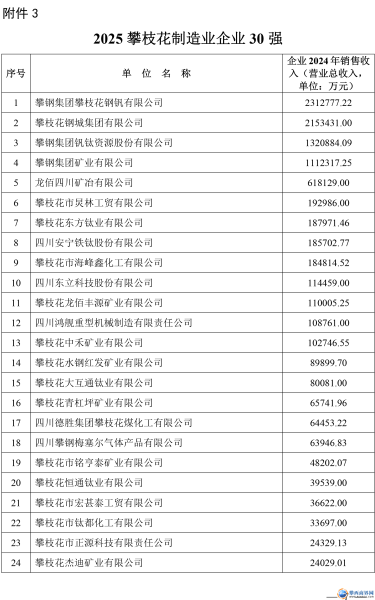 附件:2025攀枝花強勢企業(yè)排序榜單