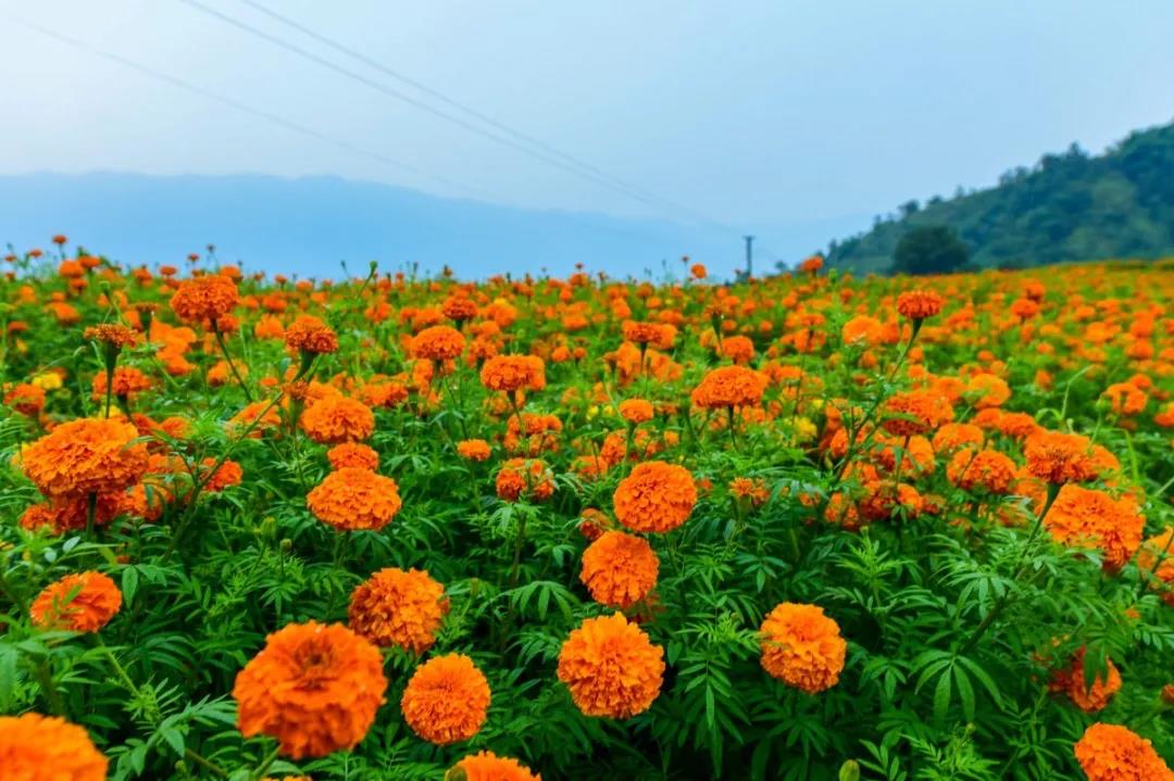 經(jīng)過三個月的生長,六月初村里試種的萬壽菊便競相綻放,前來收購的花商也表示,新民村萬壽菊的質(zhì)量,比他們現(xiàn)在種植區(qū)域質(zhì)量還要好,能達到他們更高的提取率,花商的話,更是堅定了新民村種植萬壽菊的決心。