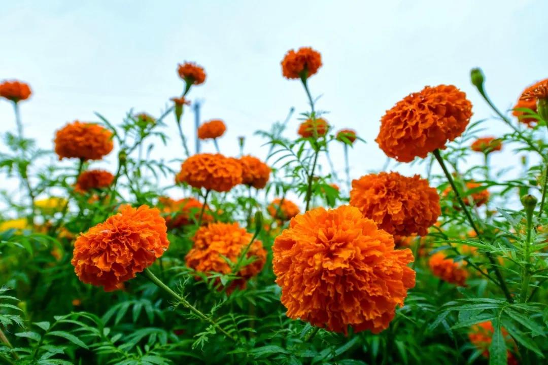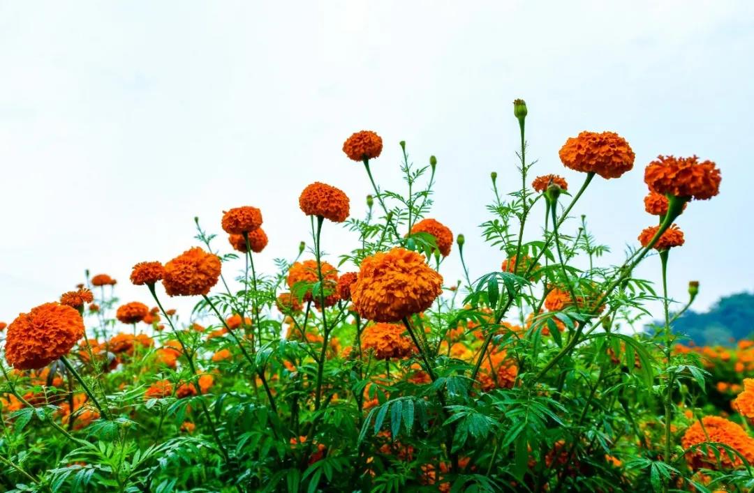 金燦燦的萬壽菊呼吸著雨后的新鮮空氣