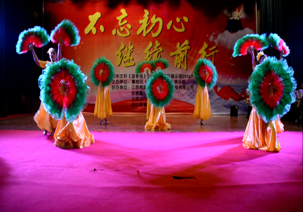 10月8日,攀枝花會展中心歌聲悠揚,其樂融融。一年一度重陽節(jié),不忘初心繼續(xù)前行。由攀枝花東區(qū)《讀者報》鴻德軒俱樂部承辦的2016年國慶、九九重陽節(jié)大型文藝匯演隆重舉行。來自五軍樂團、韻梅舞蹈團、關公委舞蹈團、長青舞蹈團、和諧舞蹈隊、水兵舞團、望江舞蹈團以及讀者報工作人員自編自演紅歌節(jié)目,向世人展示了攀枝花市老年朋友健康的體魄和熱愛生活、積極向上的精神風貌。