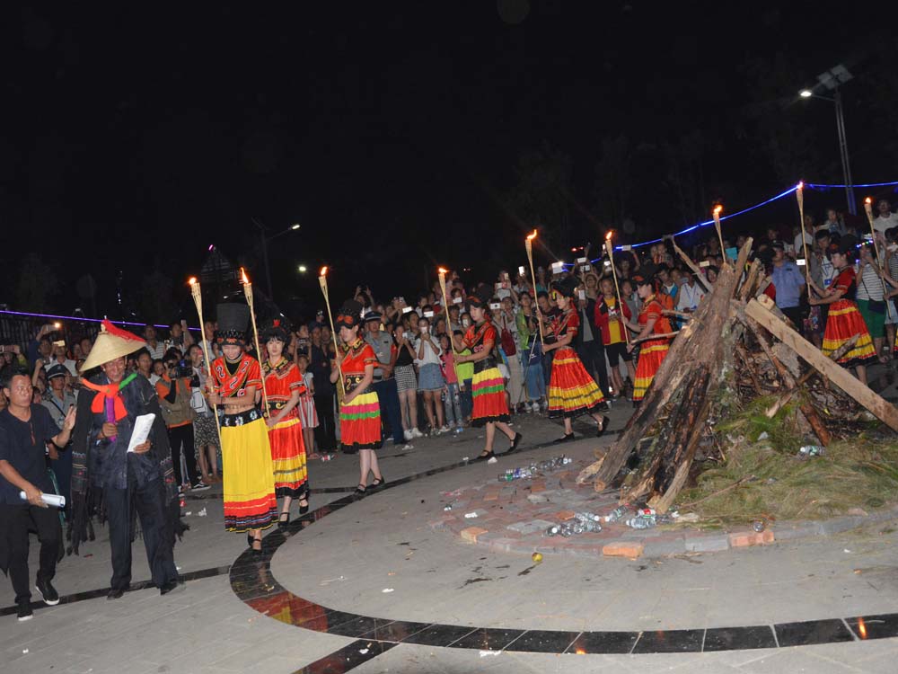 人們還早早將出嫁的女兒接回家來。節(jié)日這天殺豬宰羊,同吃同住以示親人團聚。這古老的習俗一直沿襲至今。雖與其它傳說大同小異,但卻體現(xiàn)了當?shù)匾妥灏傩盏牧曀?。按?ldquo;火把節(jié)”是農(nóng)歷的六月二十四,可這里卻過“六月二十五”。因為它是為了紀念這一天英勇的阿查和四山八寨的鄉(xiāng)親們報仇血恨的日子。