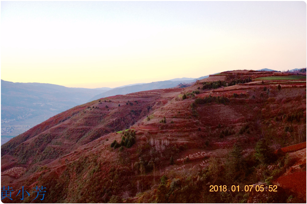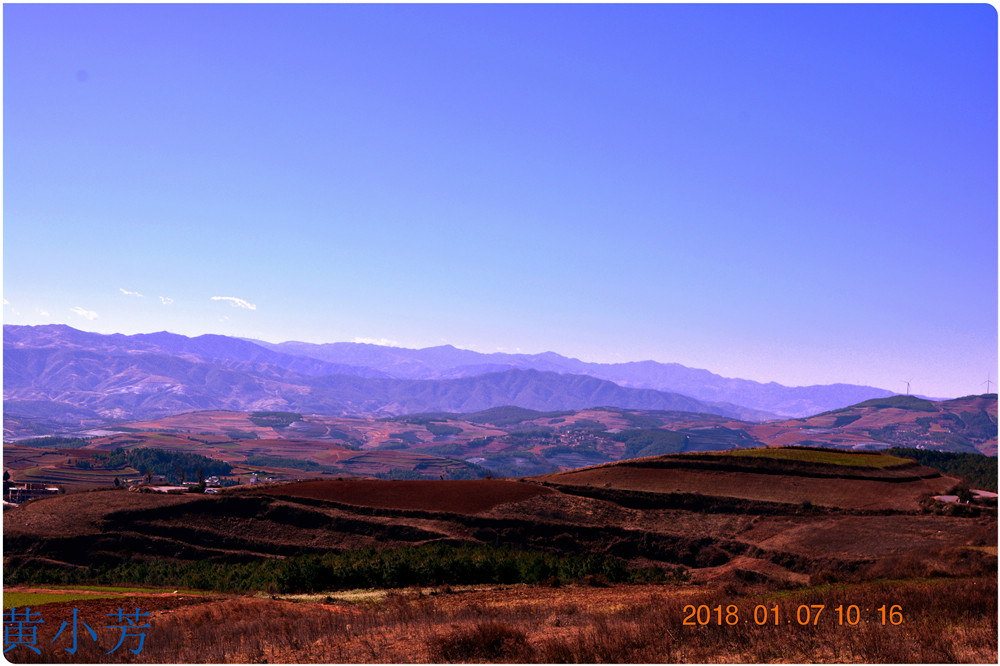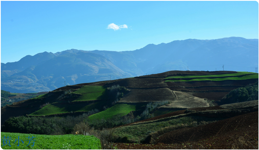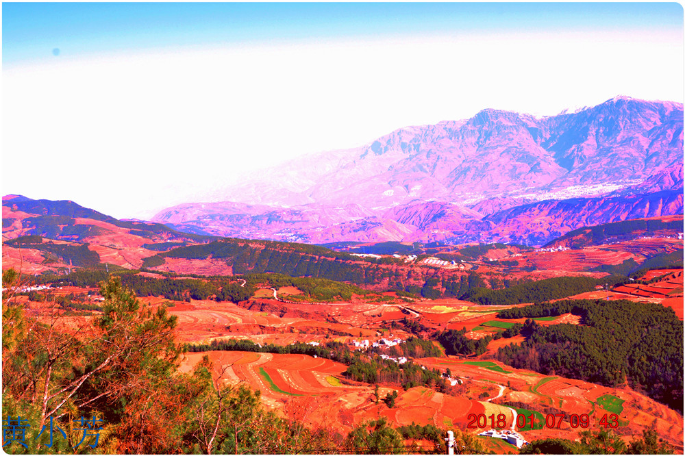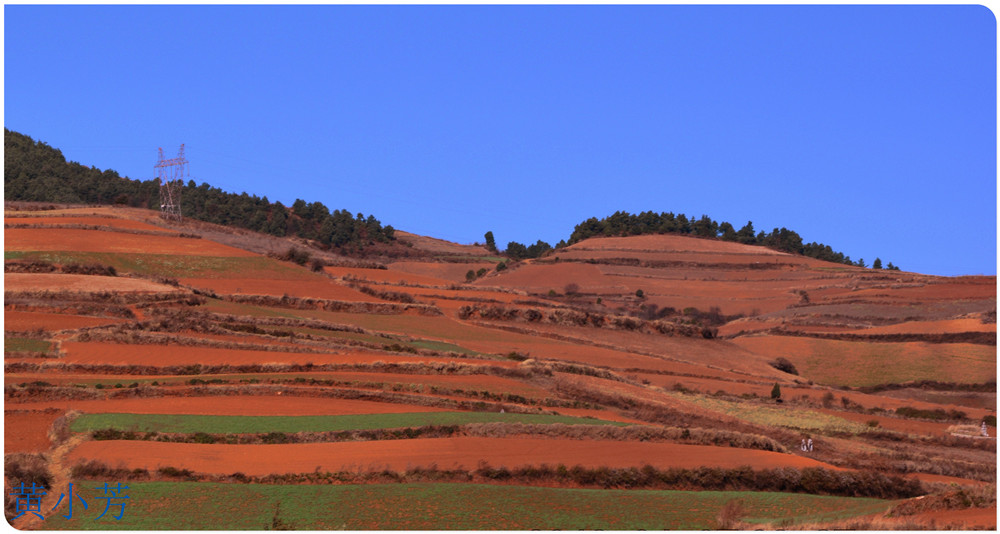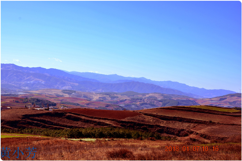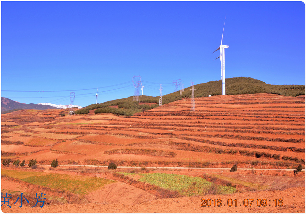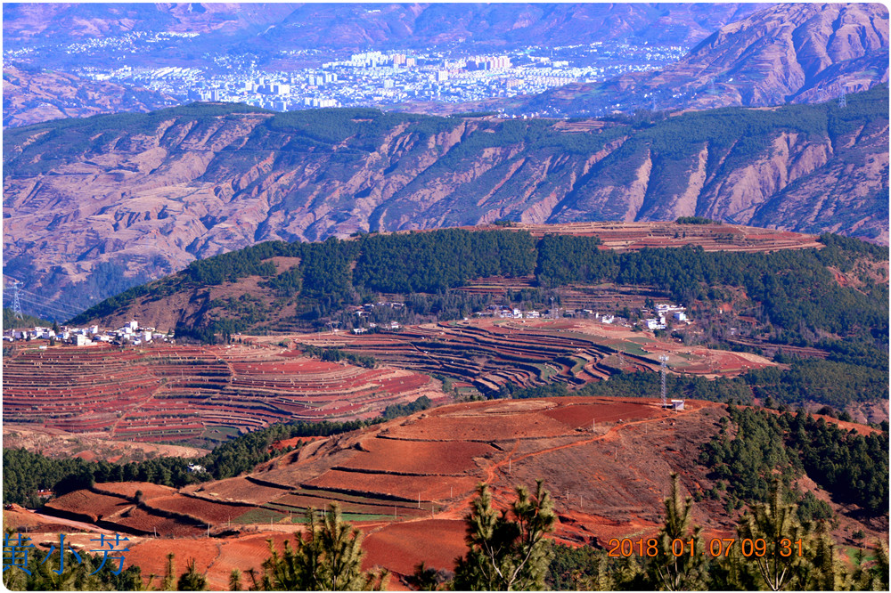 云南地處溫暖濕潤的環(huán)境,土壤里的鐵質(zhì)經(jīng)過氧化慢慢沉積下來,逐漸形成了炫目的色彩。東川紅土地指的是位于昆明市東川區(qū)西南40多公里的紅土地鎮(zhèn)、有一名叫“花石頭”(在109公里程碑處)的地方,這里方圓近百里的區(qū)域是云南紅土高原上最集中、最典型、最具特色的紅土地。每年9至12月,一部分紅土地翻根待種,另一部分紅土地已經(jīng)種上綠綠的青稞或小麥和其他農(nóng)作物,遠遠看去,就像上天涂抹的色塊,色彩絢麗斑斕,襯以藍天、白云和那變幻莫測的光束,構(gòu)成了紅土地壯觀的景色。