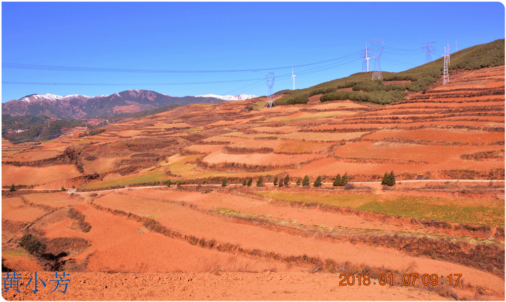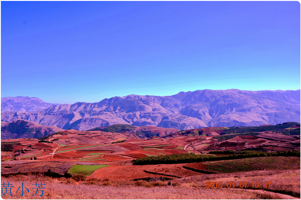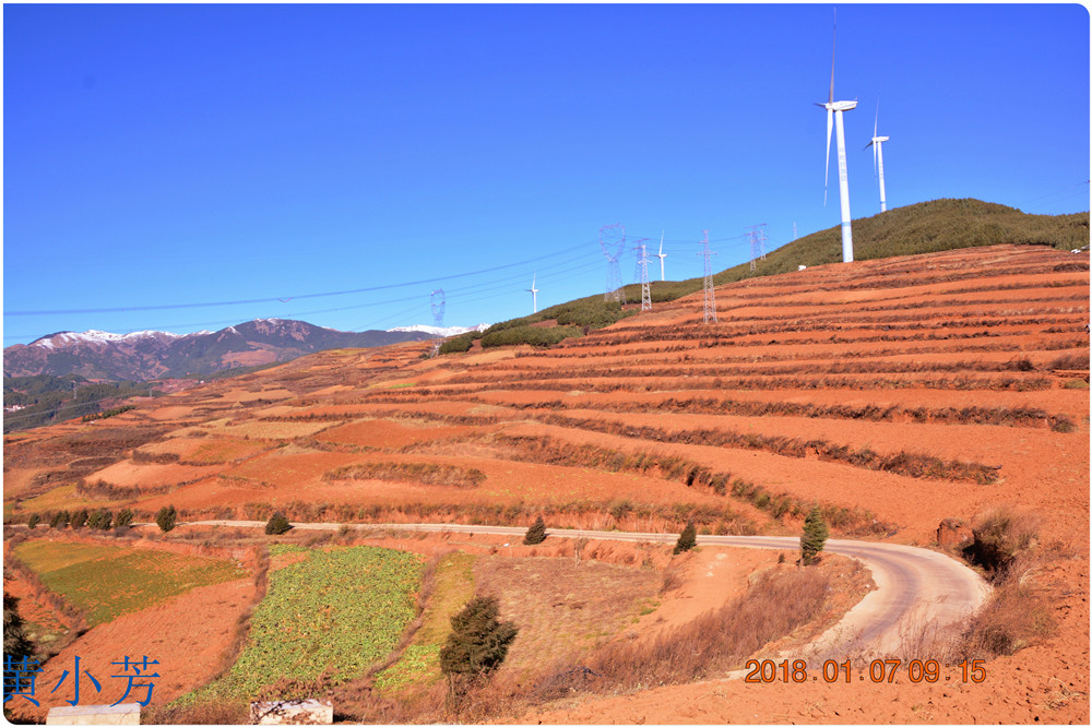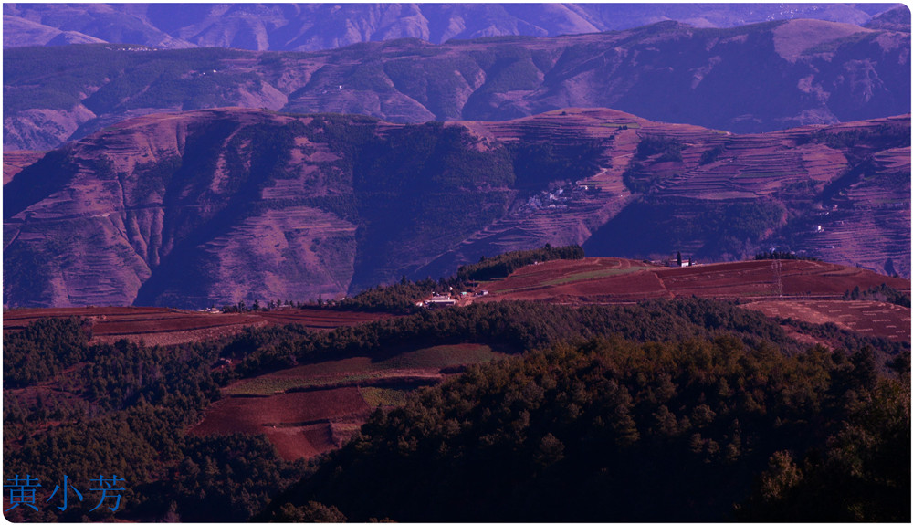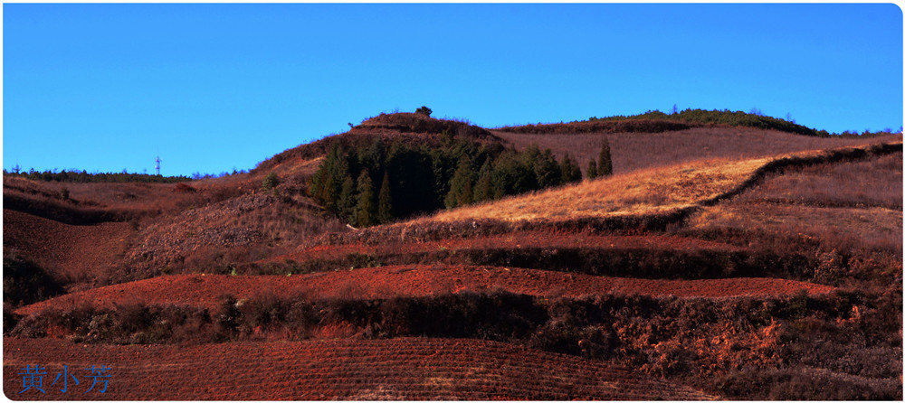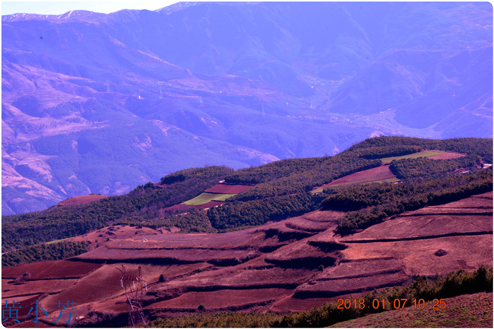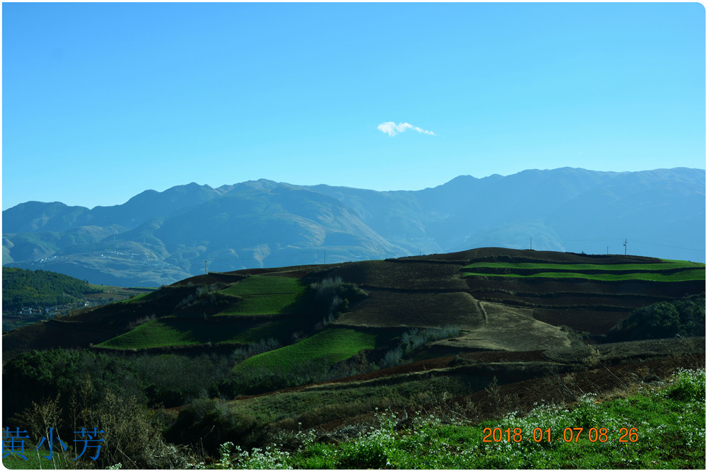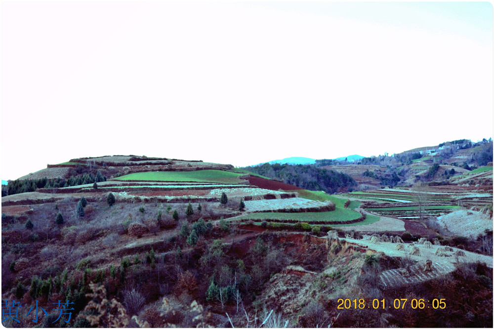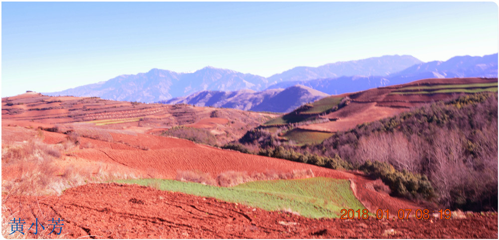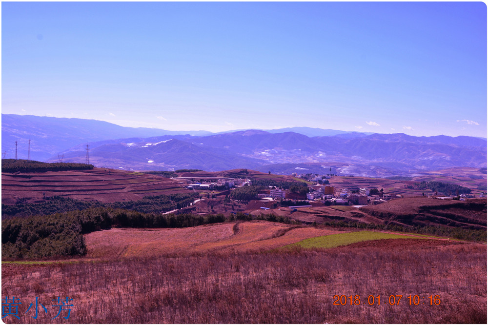 云南地處溫暖濕潤的環(huán)境,土壤里的鐵質(zhì)經(jīng)過氧化慢慢沉積下來,逐漸形成了炫目的色彩。東川紅土地指的是位于昆明市東川區(qū)西南40多公里的紅土地鎮(zhèn)、有一名叫“花石頭”(在109公里程碑處)的地方,這里方圓近百里的區(qū)域是云南紅土高原上最集中、最典型、最具特色的紅土地。每年9至12月,一部分紅土地翻根待種,另一部分紅土地已經(jīng)種上綠綠的青稞或小麥和其他農(nóng)作物,遠遠看去,就像上天涂抹的色塊,色彩絢麗斑斕,襯以藍天、白云和那變幻莫測的光束,構(gòu)成了紅土地壯觀的景色。