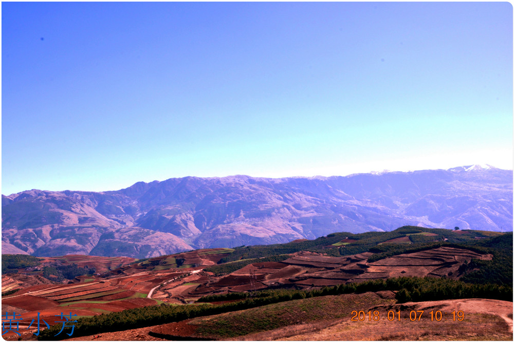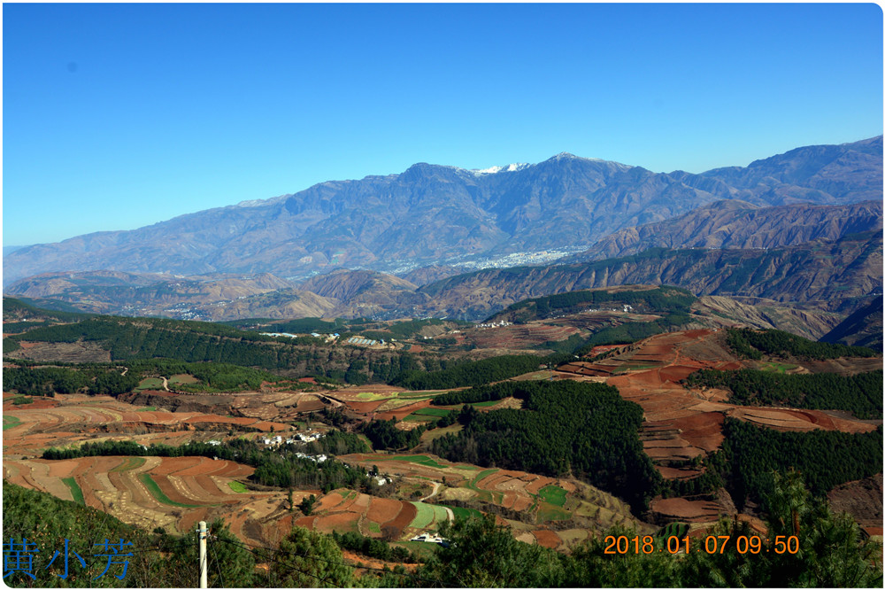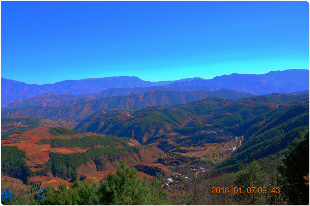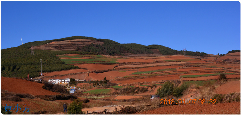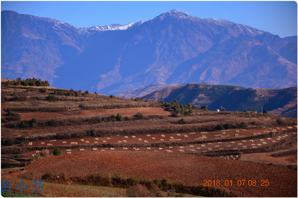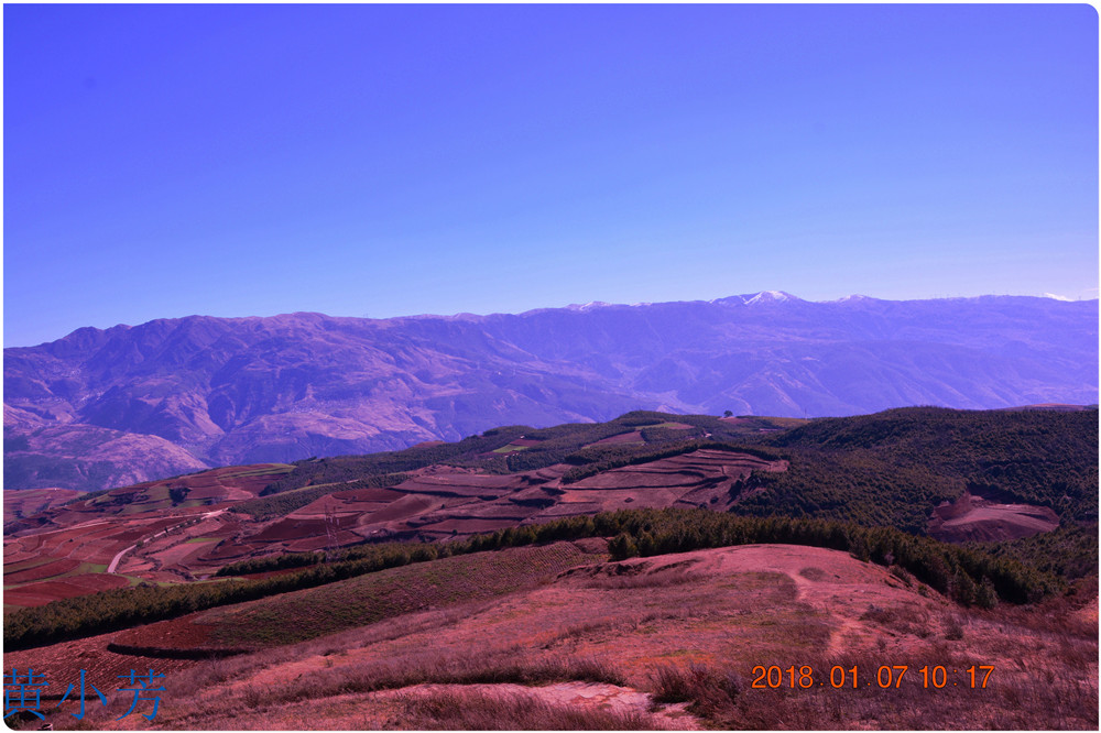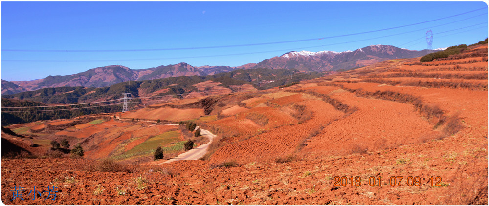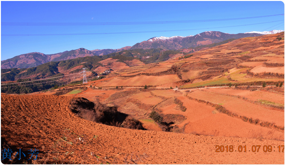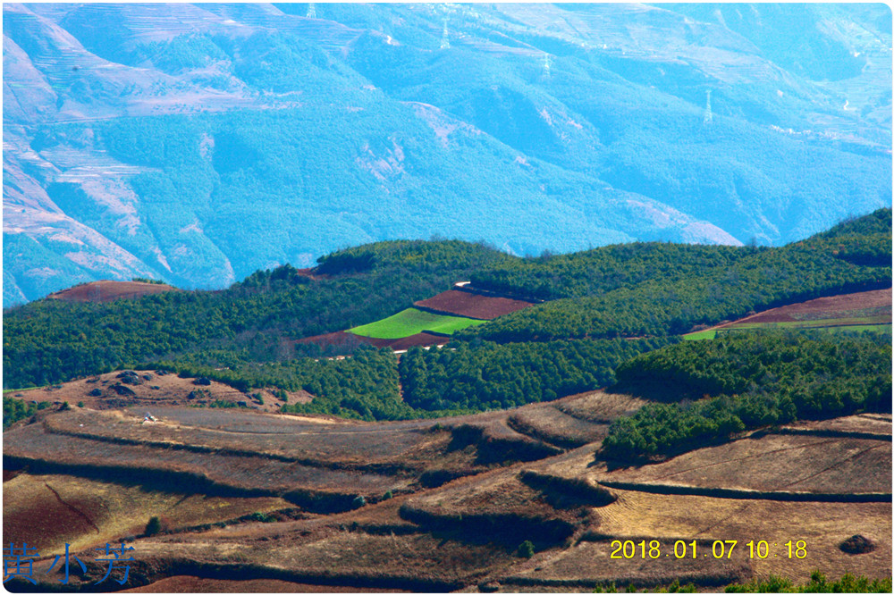云南地處溫暖濕潤的環(huán)境,土壤里的鐵質(zhì)經(jīng)過氧化慢慢沉積下來,逐漸形成了炫目的色彩。東川紅土地指的是位于昆明市東川區(qū)西南40多公里的紅土地鎮(zhèn)、有一名叫“花石頭”(在109公里程碑處)的地方,這里方圓近百里的區(qū)域是云南紅土高原上最集中、最典型、最具特色的紅土地。每年9至12月,一部分紅土地翻根待種,另一部分紅土地已經(jīng)種上綠綠的青稞或小麥和其他農(nóng)作物,遠遠看去,就像上天涂抹的色塊,色彩絢麗斑斕,襯以藍天、白云和那變幻莫測的光束,構(gòu)成了紅土地壯觀的景色。