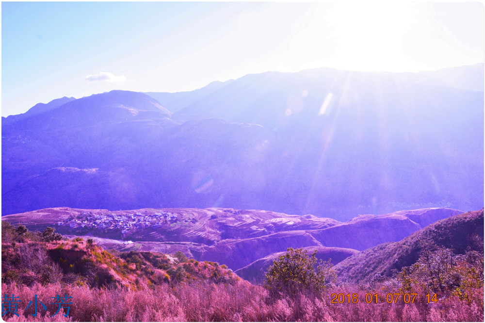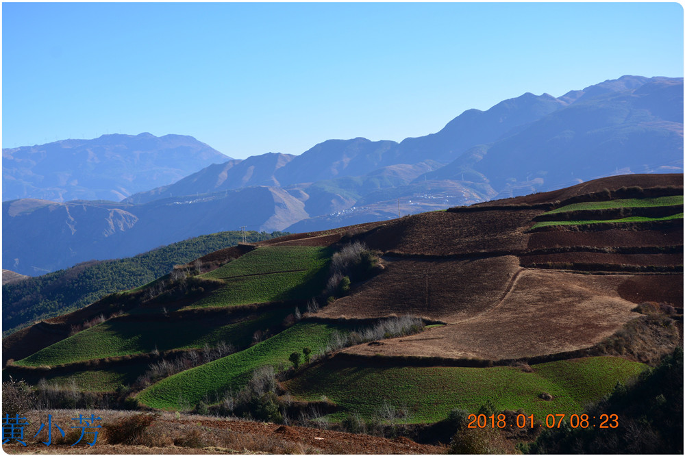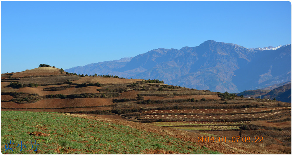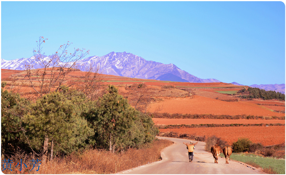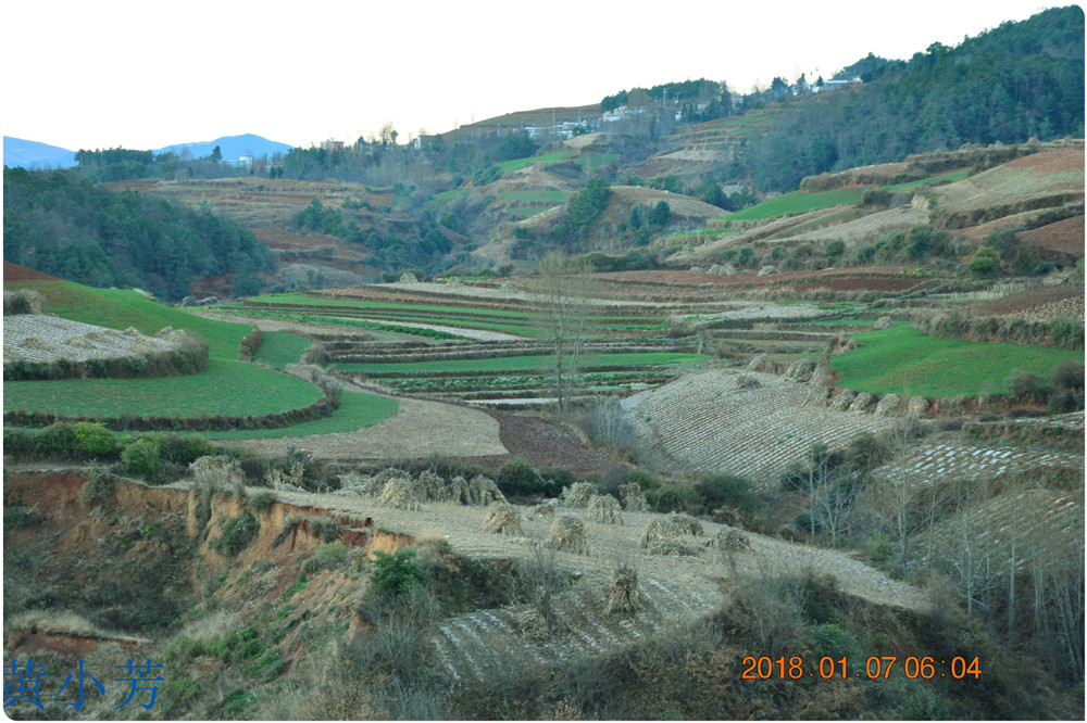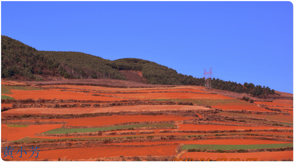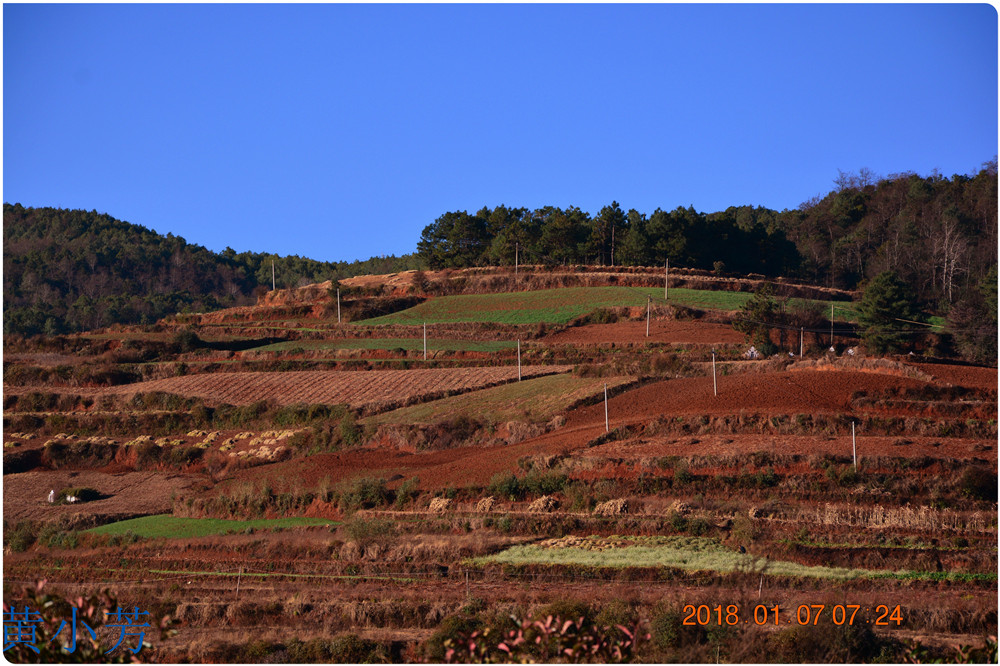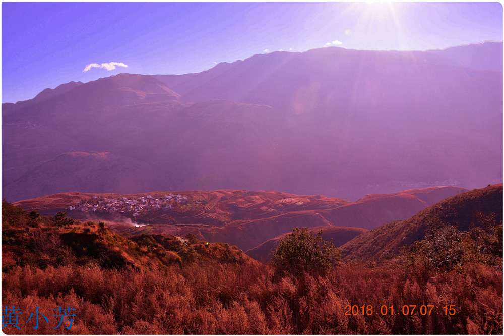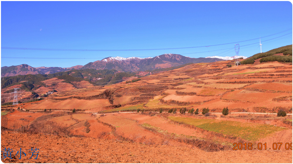 云南地處溫暖濕潤的環(huán)境,土壤里的鐵質(zhì)經(jīng)過氧化慢慢沉積下來,逐漸形成了炫目的色彩。東川紅土地指的是位于昆明市東川區(qū)西南40多公里的紅土地鎮(zhèn)、有一名叫“花石頭”(在109公里程碑處)的地方,這里方圓近百里的區(qū)域是云南紅土高原上最集中、最典型、最具特色的紅土地。每年9至12月,一部分紅土地翻根待種,另一部分紅土地已經(jīng)種上綠綠的青稞或小麥和其他農(nóng)作物,遠遠看去,就像上天涂抹的色塊,色彩絢麗斑斕,襯以藍天、白云和那變幻莫測的光束,構(gòu)成了紅土地壯觀的景色。