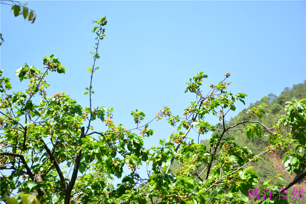 櫻桃的果實(shí)已經(jīng)成形掛果微紅,櫻桃園主人說等一個(gè)星期就可以品嘗到美味果實(shí)。