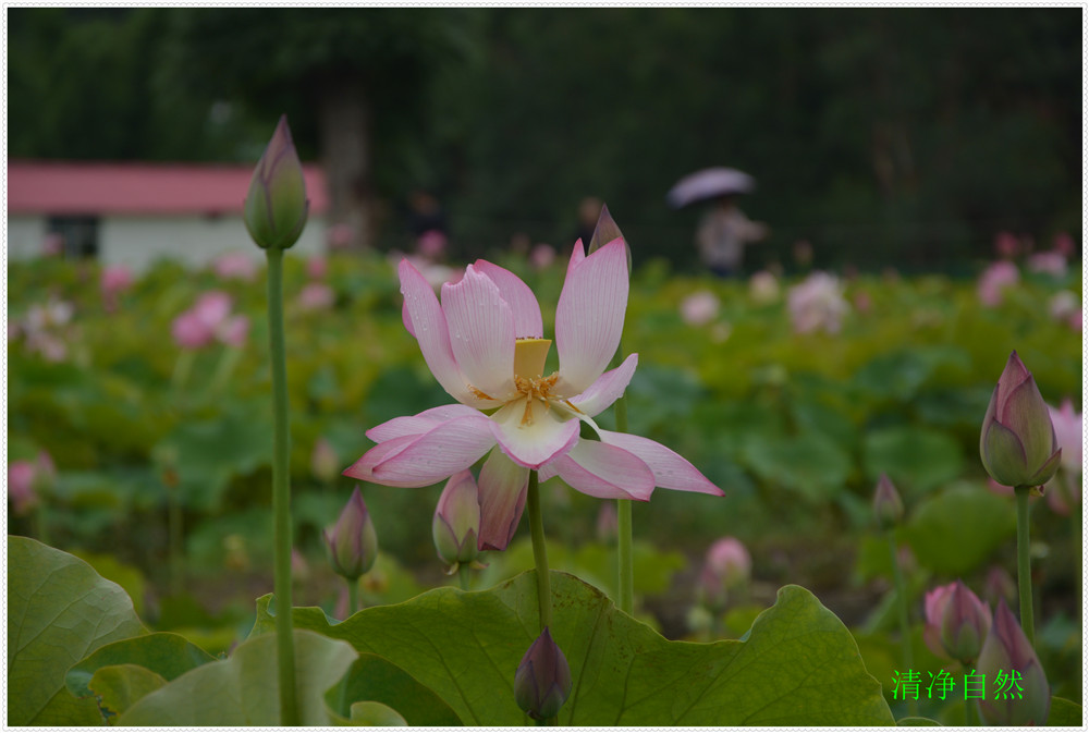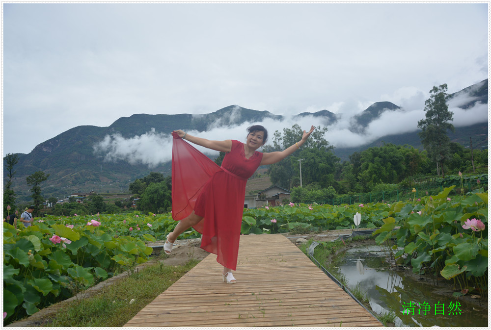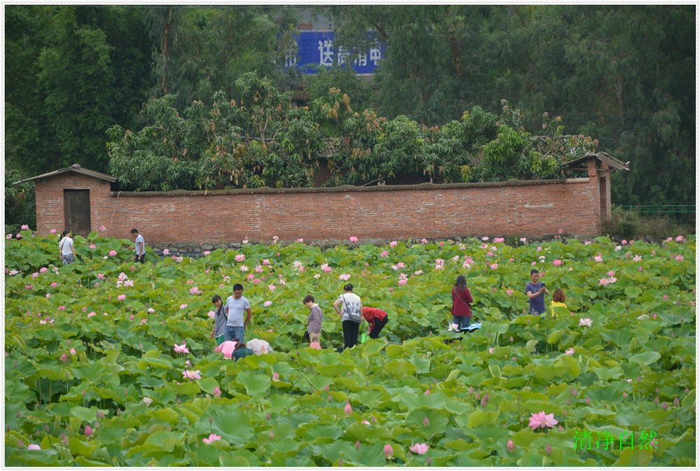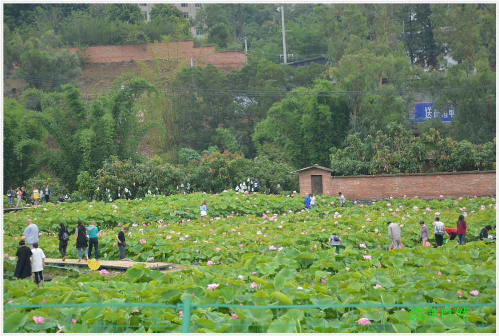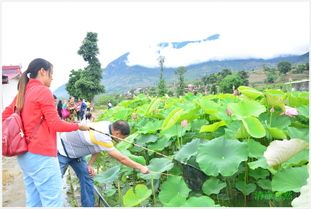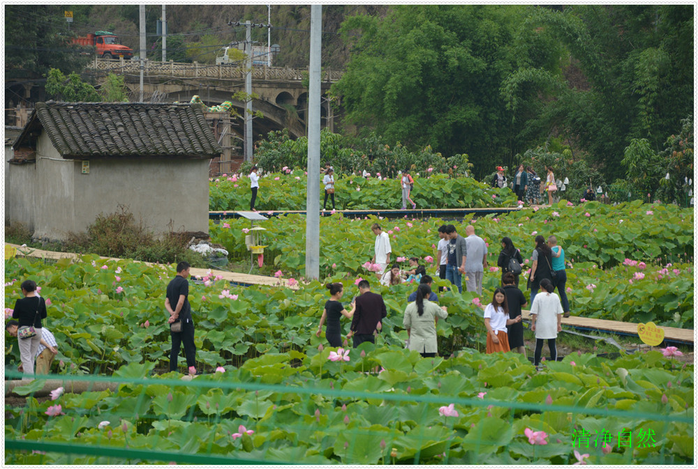 近日每天觀賞荷花的人上千人欣賞留影嬉笑垂釣龍蝦,云霧飄飄飄,使人流年忘返">