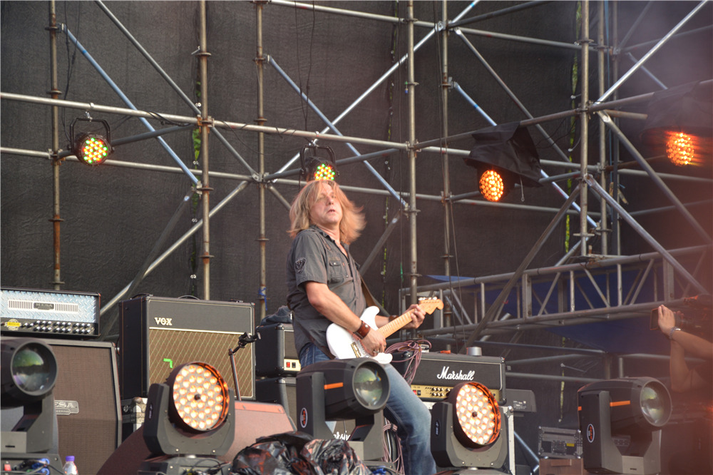 節(jié)奏。雖然搖滾風格流派多樣,但其重視節(jié)奏這一傳統(tǒng),一直保留下來。搖滾最基本元素是節(jié)奏。節(jié)奏由鼓和貝斯加以強調(diào),由節(jié)奏吉他和鍵盤作輔助,有時還加入其他一些色彩性的打擊樂器。這些節(jié)奏樂器在低聲部重復一些簡單的旋律,或是對旋律動機做出一種特別的反映,有事甚至還有更為復雜的變化。