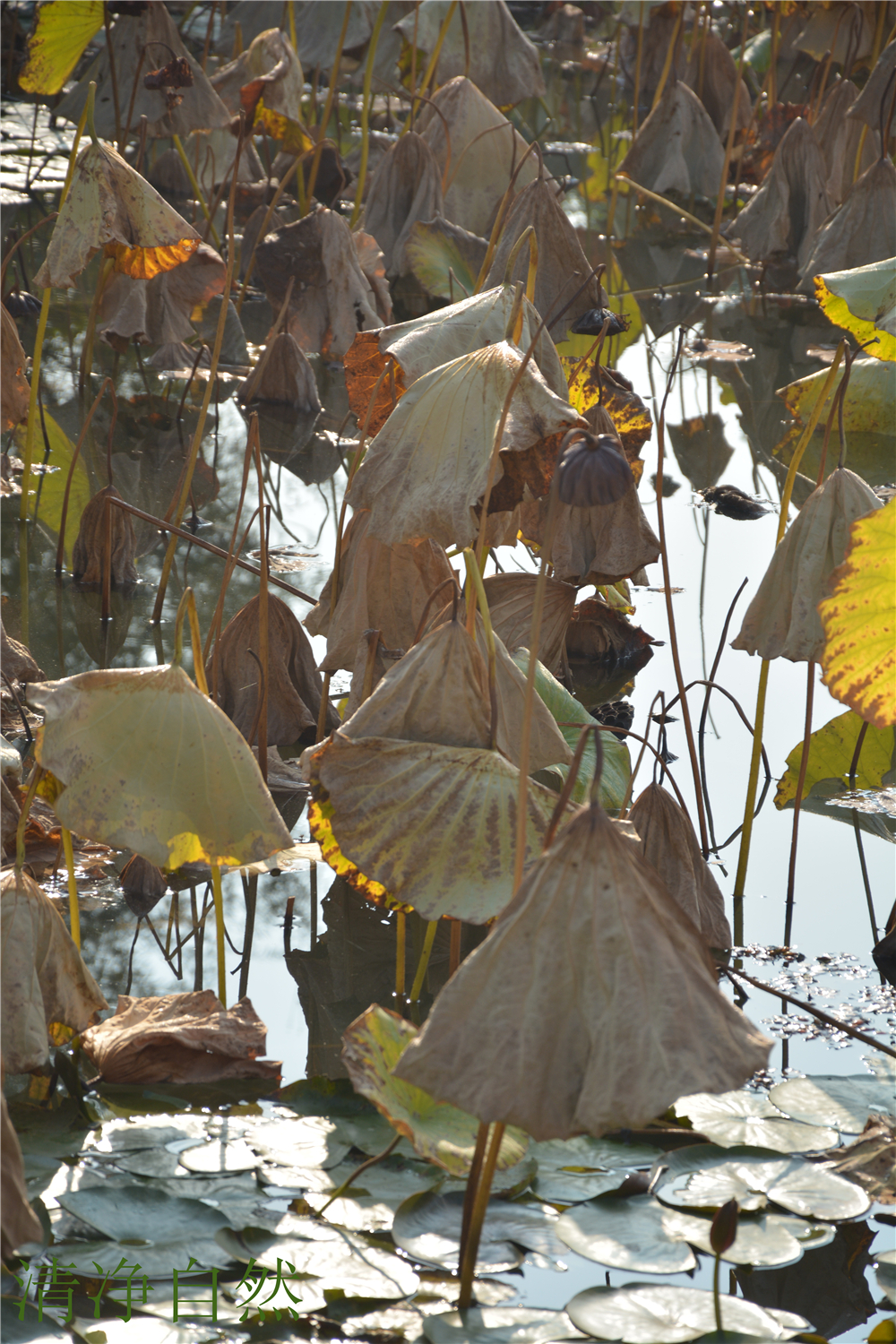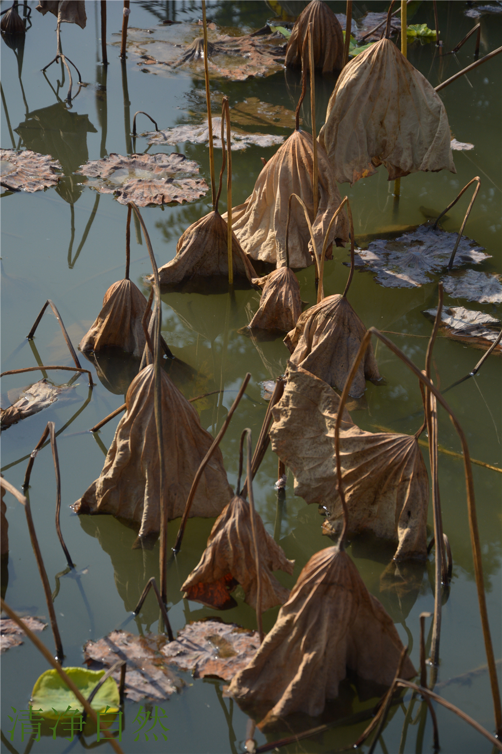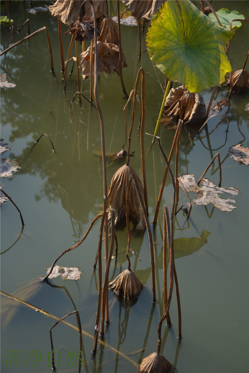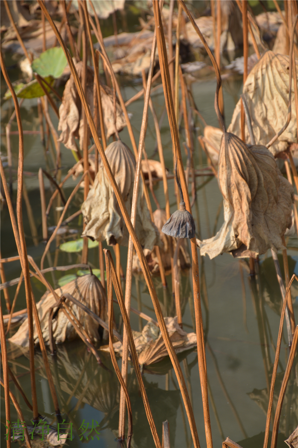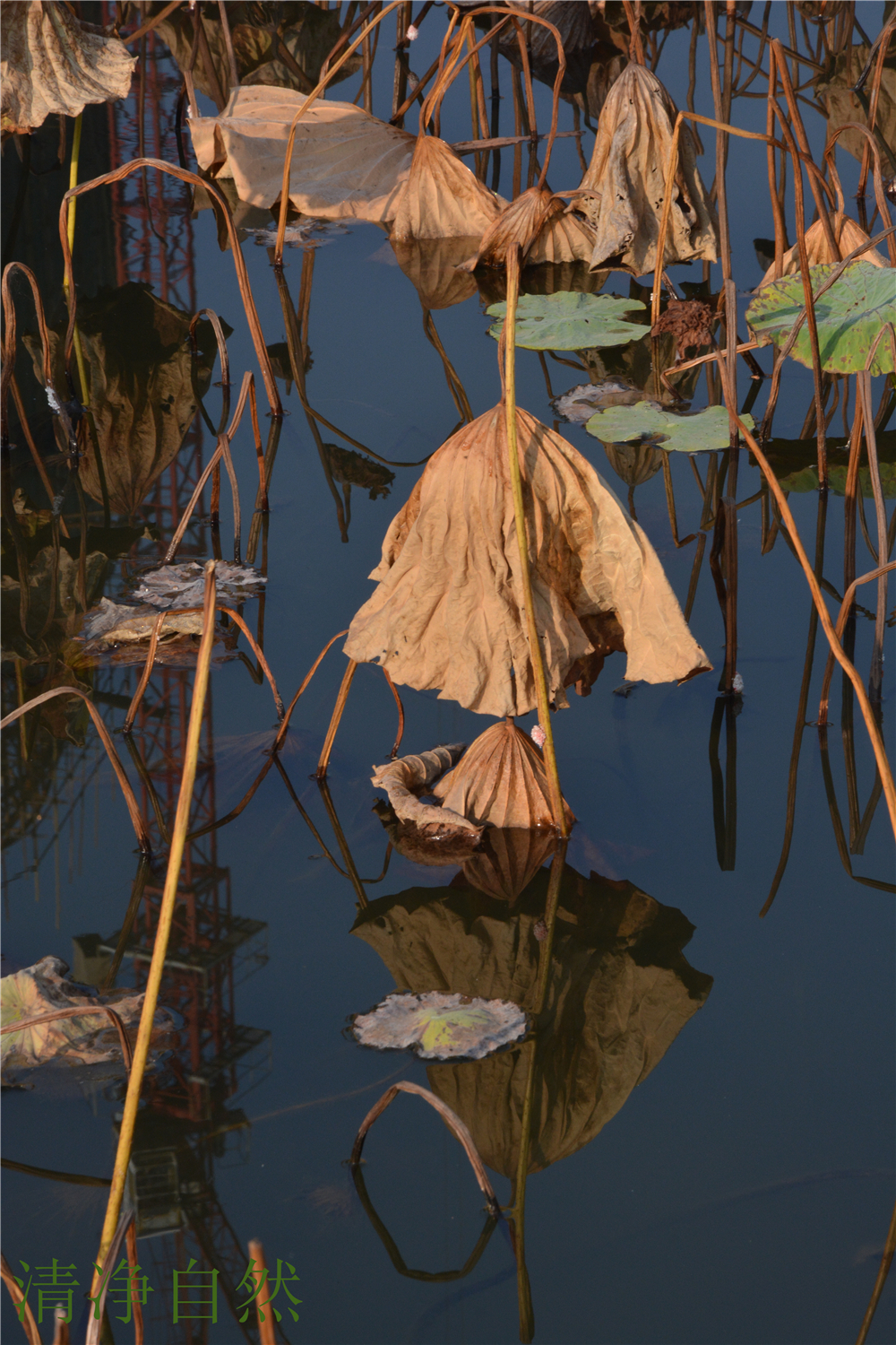 堅守著一份生命美麗的本質(zhì),清美的傲骨,殘缺的韻意,在深秋的湖里無意雕琢卻成了一處撼人心魂的風(fēng)景。