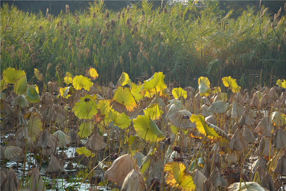一直以為,荷的美只留存于夏日,卻不經(jīng)意那一池的歲寒枯黃。