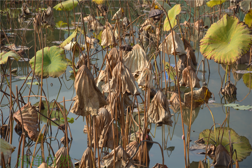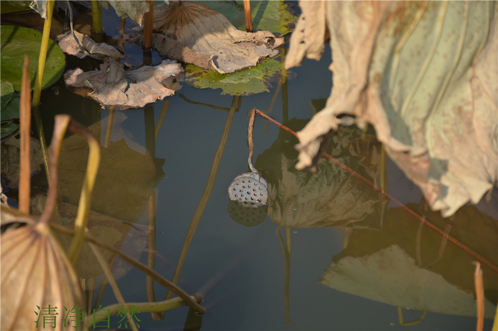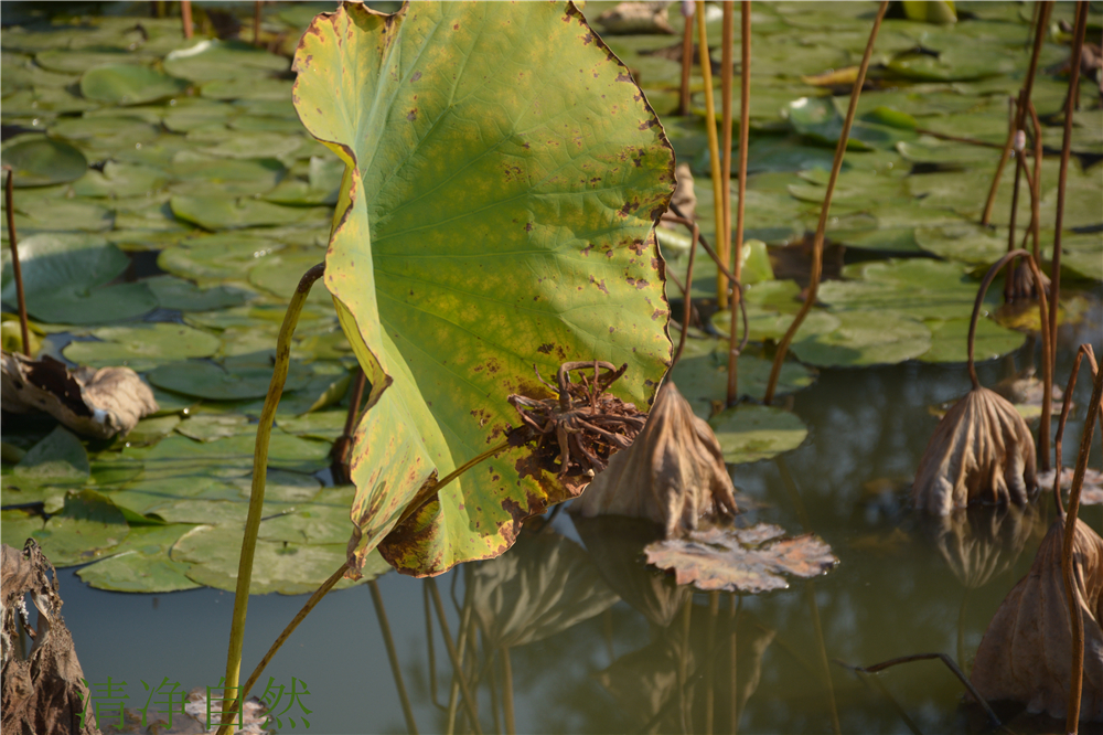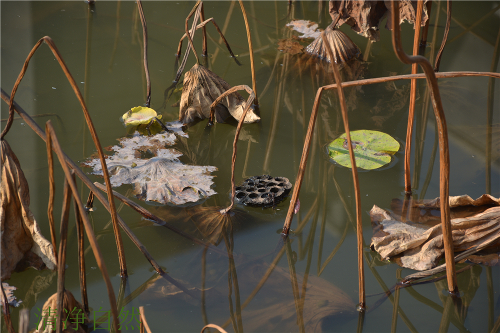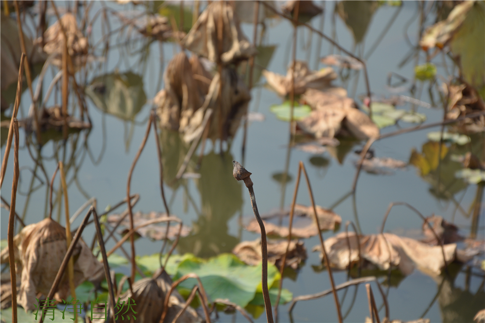 總感覺,殘荷的枯敗里藏駐著一種不折的神韻,一種淡定不驚的氣場。當(dāng)生命不再有了耀眼的花衣,依然以清香的筋骨佇立,好一幅殘缺的美卷。