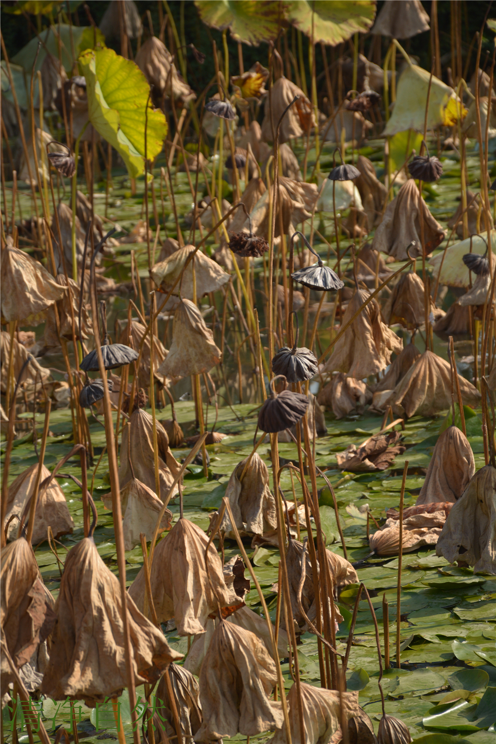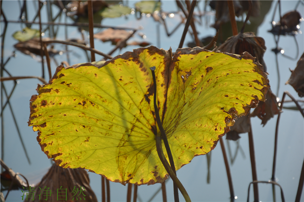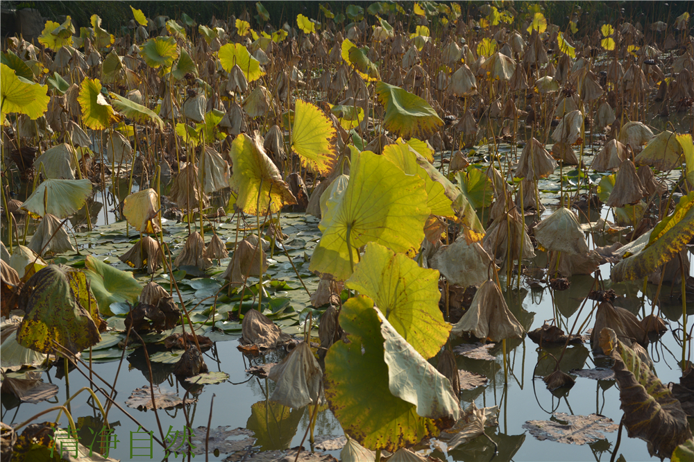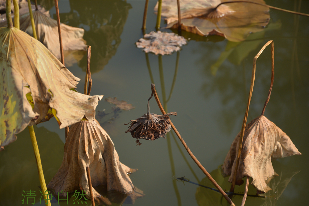 總感覺,殘荷的枯敗里藏駐著一種不折的神韻,一種淡定不驚的氣場。當(dāng)生命不再有了耀眼的花衣,依然以清香的筋骨佇立,好一幅殘缺的美卷。