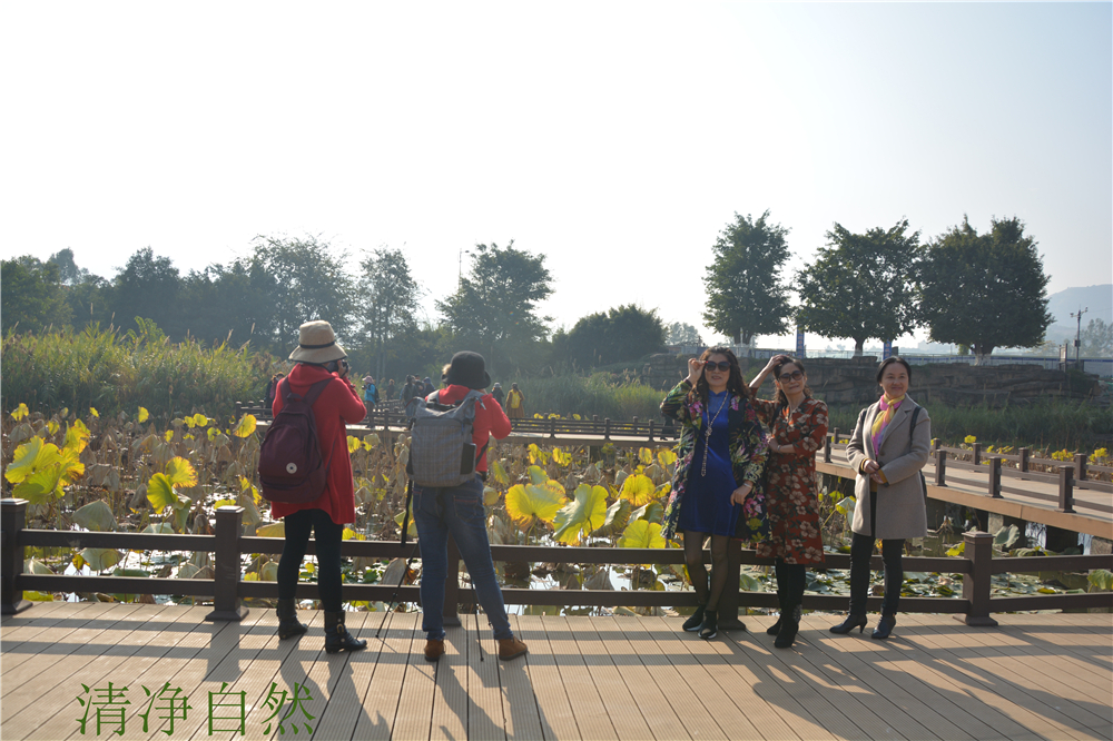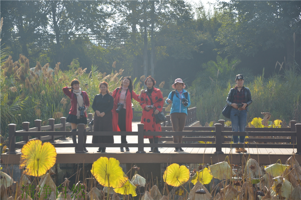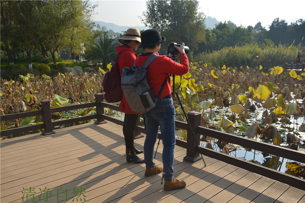 在陳輝老師與與王小明等攝影愛好者喜聚仁和公園進行殘荷攝影技術(shù)交流與學(xué)習(xí)。">