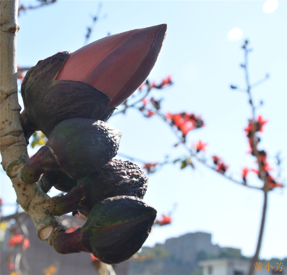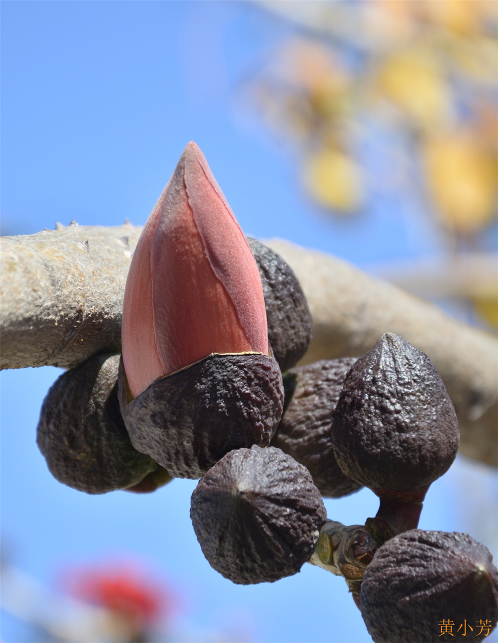 為了熬過(guò)嚴(yán)冬,木棉樹脫去樹葉,光頹頹看似死亡,內(nèi)里卻蘊(yùn)含積存在樹干內(nèi)的無(wú)限生命力,等候春天的來(lái)臨。當(dāng)開花的時(shí)候,葉子便脫落,只顯出花朵的美麗及壯觀,這是木棉樹隱藏的生命。