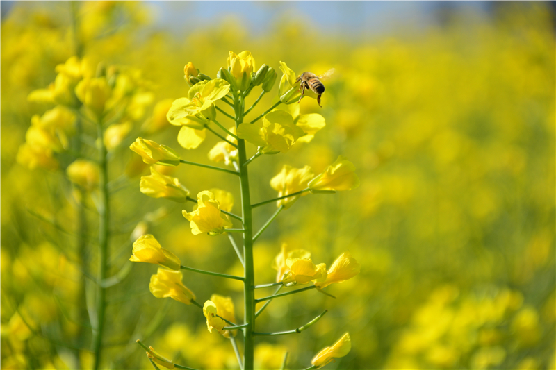 普威鎮(zhèn)龍?zhí)洞澹?000余畝成片生長、盛開的油菜花延綿不斷,到處黃燦燦的一片,蝴蝶蜂喧,令人賞心悅目、洋溢著勃勃生機的“鬧春圖”。
