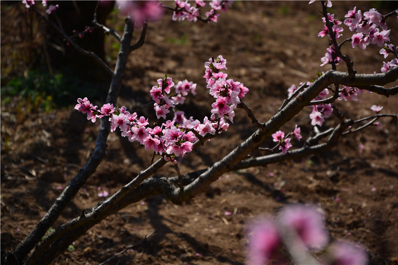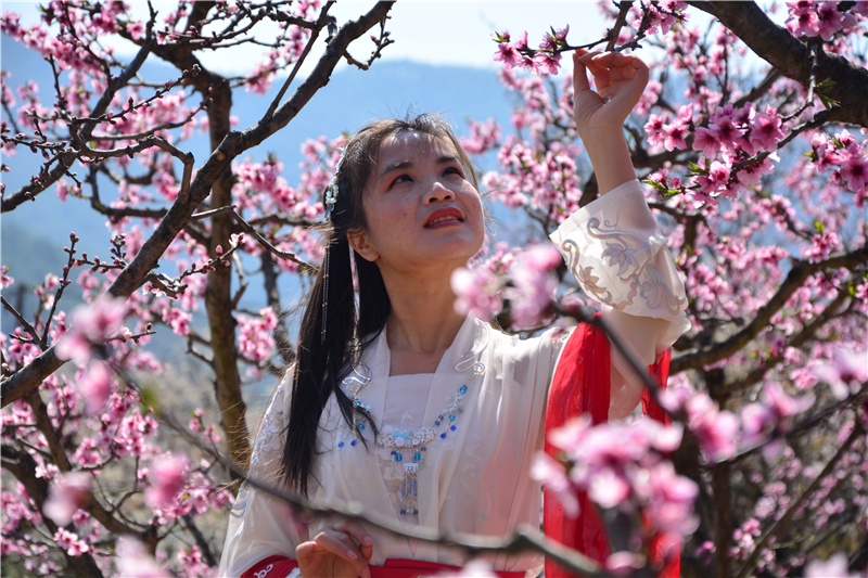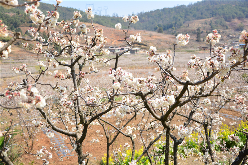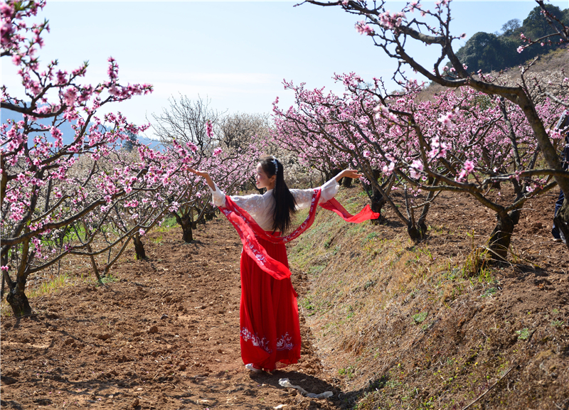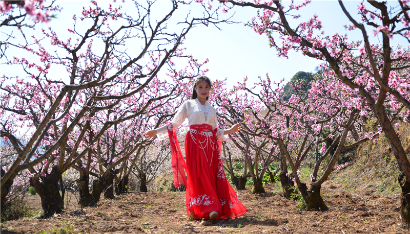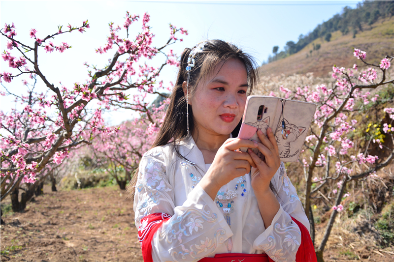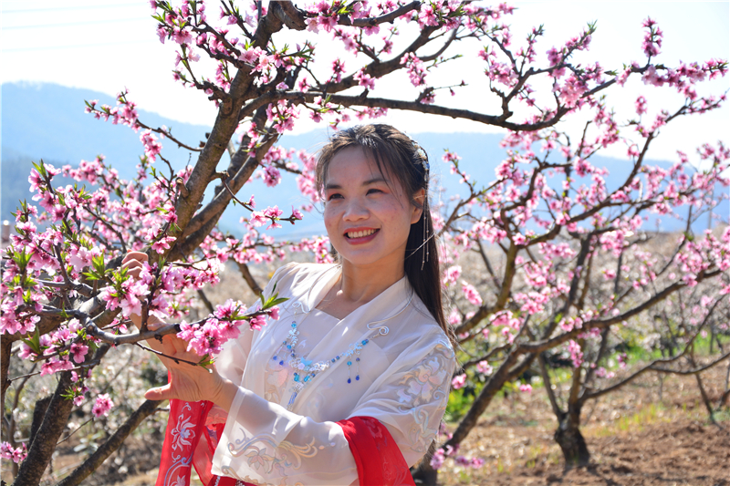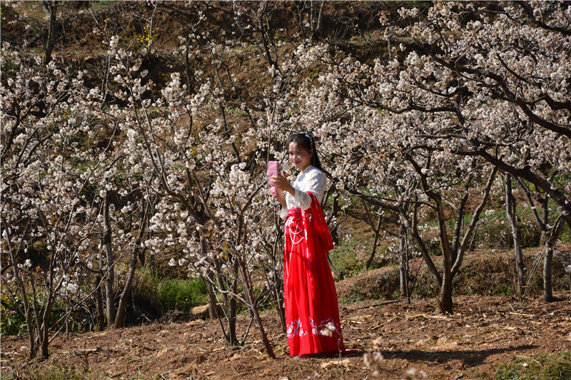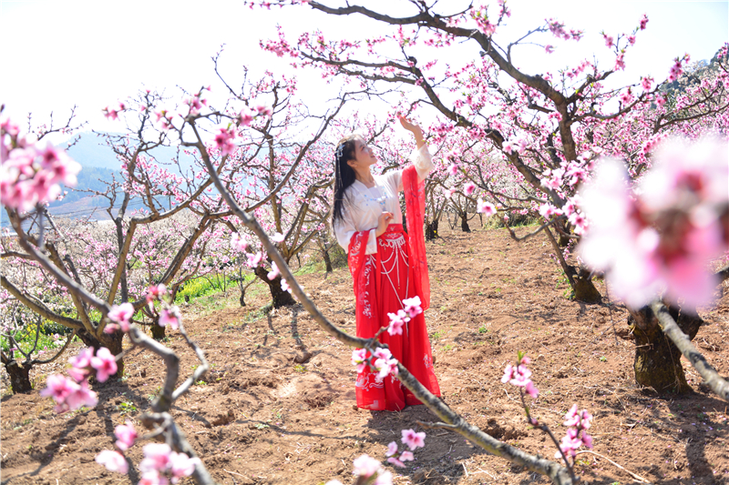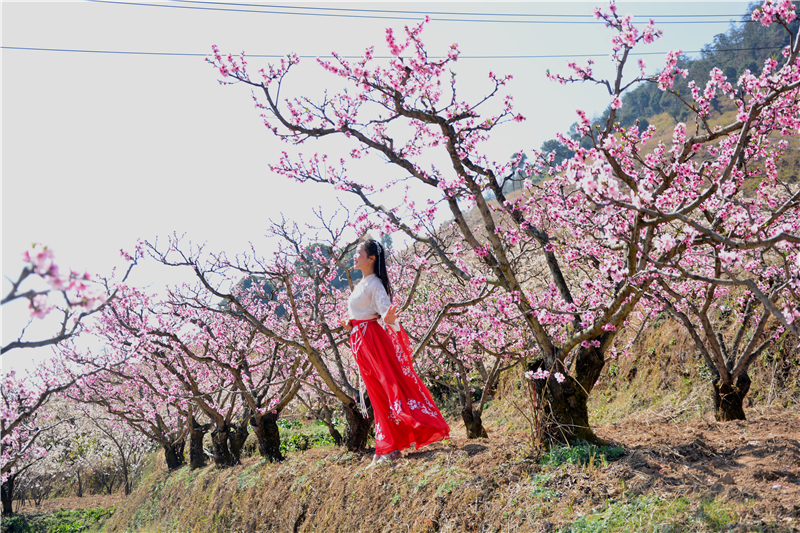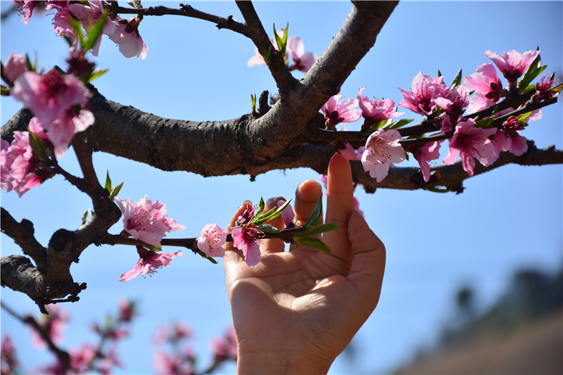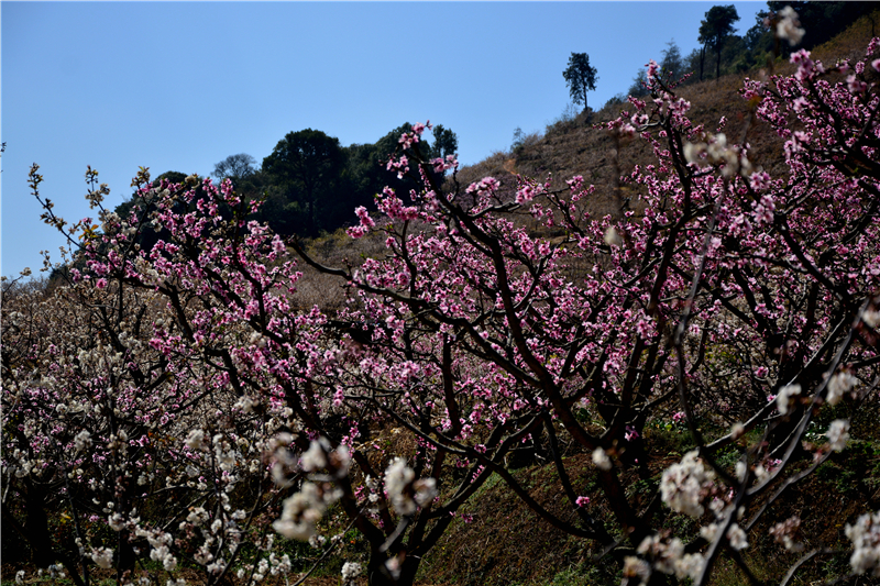 陽春三月的攀枝花米易撒蓮鎮(zhèn)海塔櫻桃花與桃花也欣然競相迸放。