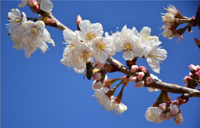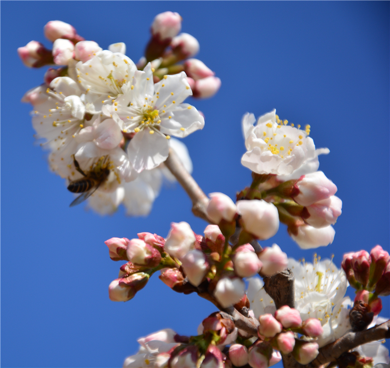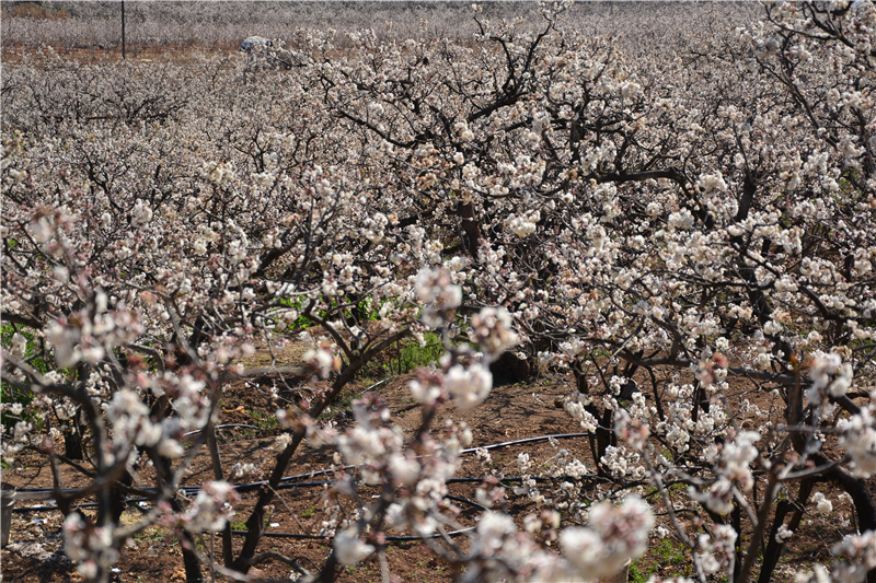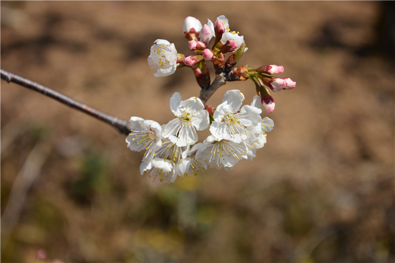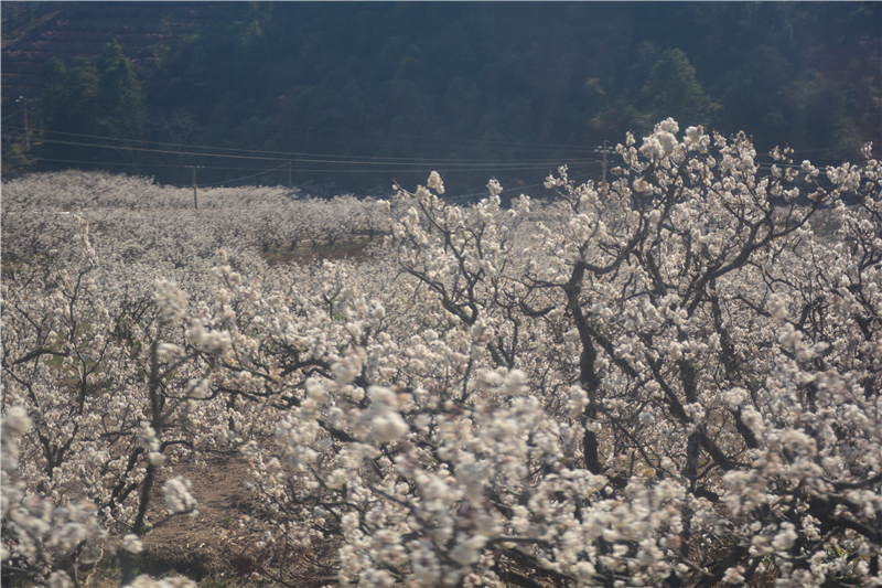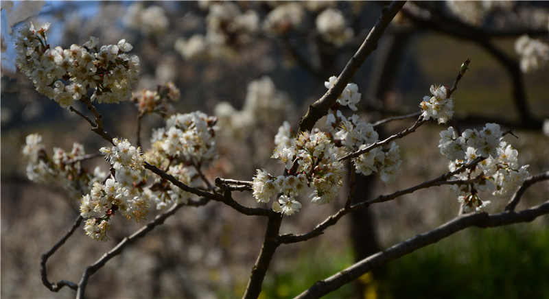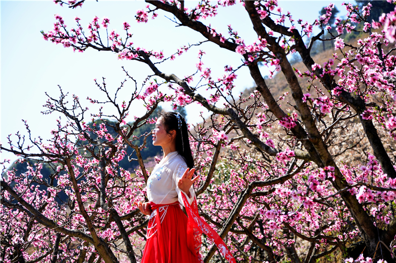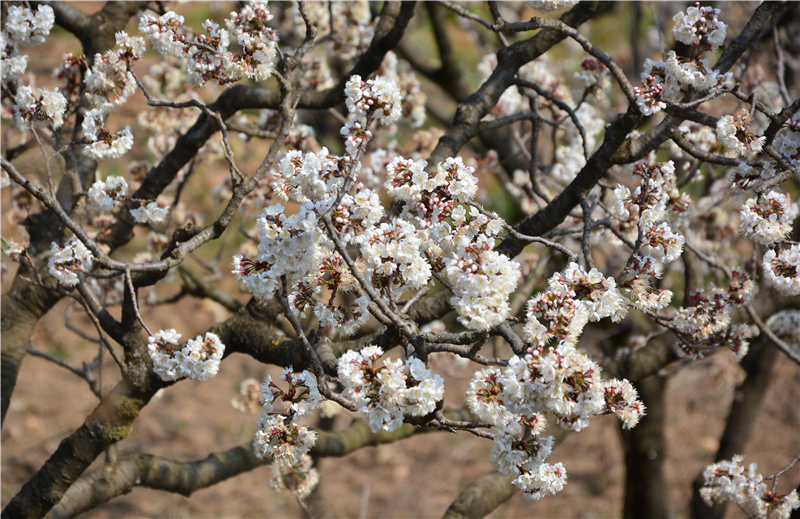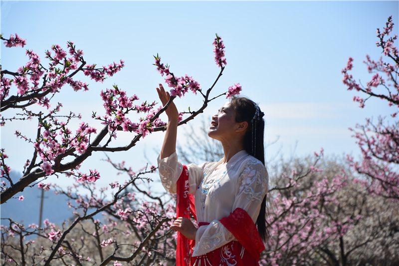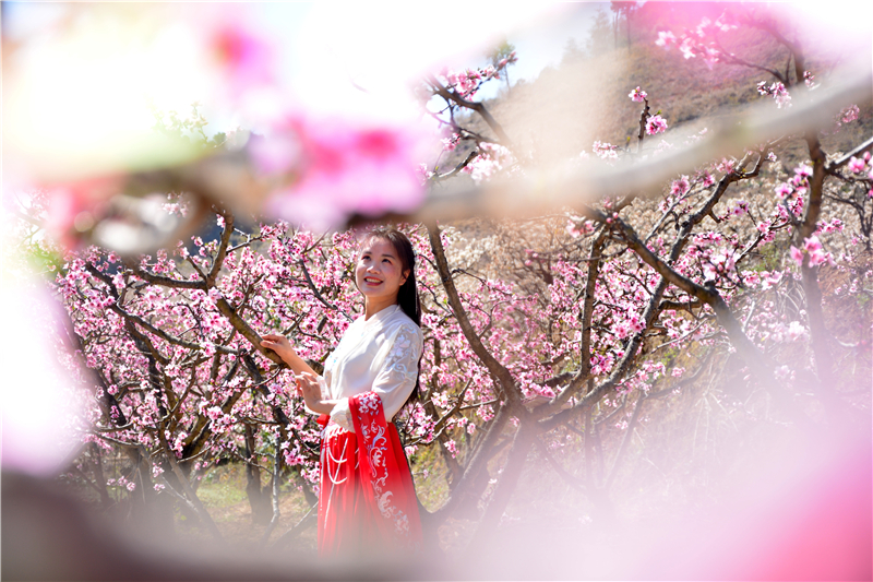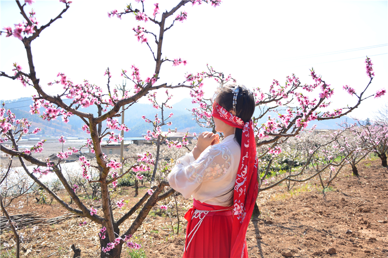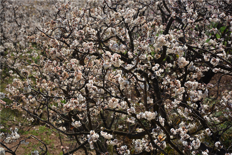 陽春三月的攀枝花米易撒蓮鎮(zhèn)海塔櫻桃花與桃花也欣然競相迸放。