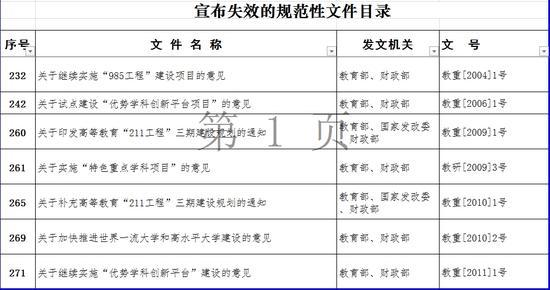 日前,教育部宣布失效一批規(guī)范性文件,其中包括《關(guān)于繼續(xù)實施“985工程”建設(shè)項目的意見》《關(guān)于補充高等教育“211工程”三期建設(shè)規(guī)劃的通知》《關(guān)于實施“重點特色學(xué)科項目”的意見》《關(guān)于繼續(xù)實施“優(yōu)秀學(xué)科創(chuàng)新平臺”建設(shè)的意見》等文件。