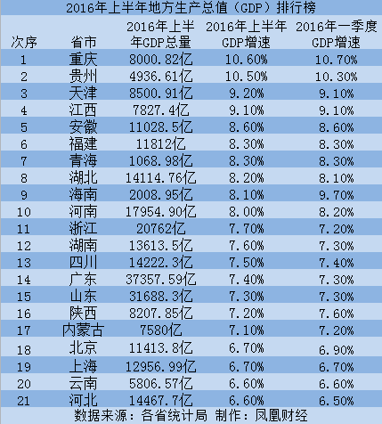 • 21省市上半年GDP增速出爐 重慶連續(xù)十個季度奪冠(表)