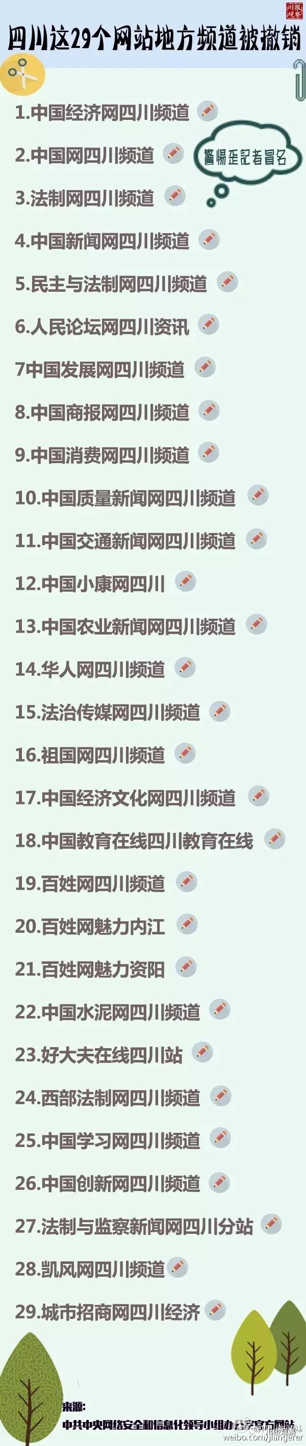 • 【中央網(wǎng)信辦撤銷387家網(wǎng)站地方頻道 29家涉及四川】