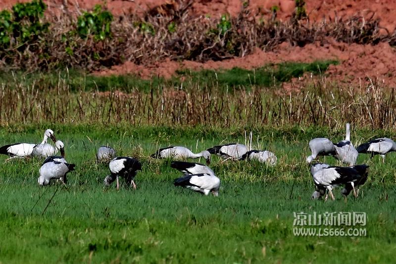 2006年首次在我國云南大理洱海有記錄。2011年初次在西昌邛海發(fā)現(xiàn),至今每年的4月鉗嘴鸛都要成群結(jié)隊地來到邛海濕地。據(jù)筆者觀察,目前有近百只鉗嘴鸛,它們多為群體活動,在邛海周邊核桃村、小漁村、趙家村、焦家村、王家村、聯(lián)合村等濕地一帶棲息覓食。