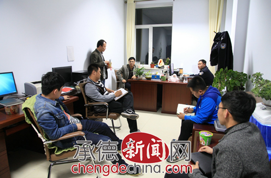 4月7日,刑警大隊(duì)長(zhǎng)劉國(guó)飛(中)召開會(huì)議,部署固定證據(jù)及后續(xù)工作。