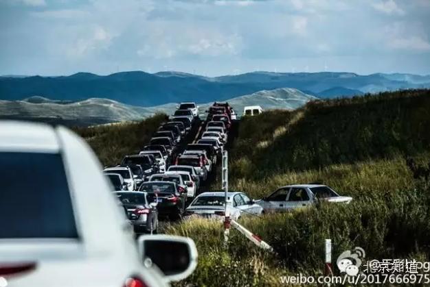 從車牌來看,來這里自駕的也都是周邊省市的車輛,河北、內(nèi)蒙、天津、北京,咱北京的車去得算最多的。很多從草原天路回來的朋友說,下次再也不去了,一路上盡看人沒看景。路邊隨意停車拍照的游客把本來只有兩條車道的公路堵的死死的。