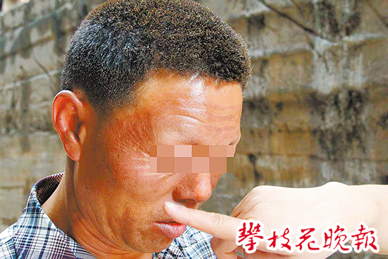 ? ?4月18日9時(shí)許,記者來到位于向陽村鋼花社區(qū)劉先生的家里時(shí),他正躺在床上休息,床邊有一堆治療燒傷的藥物。劉先生的面部因燒傷已發(fā)黑,胡須、眉毛、眼睫毛均被燒光,頭發(fā)也被燒焦。