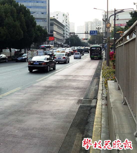? ?23日上午9時(shí)左右,記者在竹湖園公交車專用道附近觀察了近十分鐘,在公交車集中到站時(shí),幾乎沒有社會(huì)車輛從公交專用道上通行,而專用道上無公交車或是公交車較少時(shí),有直行的社會(huì)車輛借專用道通行,其中包括私家車和出租車。